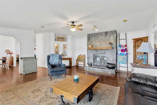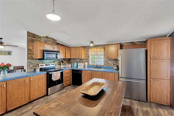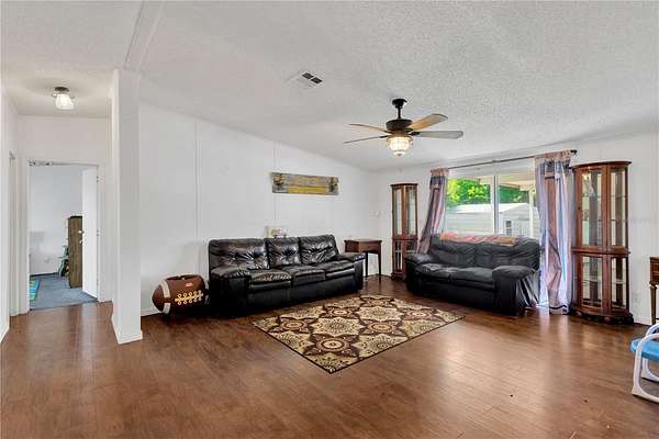 Discover the perfect blend of space, comfort, and tranquility with this 4-bedroom, 2-bathroom doublewide manufactured home situated on a sprawling 2.38 acre lot in Plant City. The front door opens into the spacious living room with vaulted ceilings creating an open atmosphere, giving the room an even larger feeling. It even has a wood burning fireplace! The kitchen has ample counter and cabinet space for casual dining or meal prep. There is an eat in bar as well as enough room for a table. The family room is open to the kitchen, creating a warm and inviting space for get-togethers or cozy nights at home. The primary bedroom has a spacious walk-in closet and a large ensuite bathroom with a shower stall, and large vanity area. The other three bedrooms are spacious, and the guest bath has been fully updated! This home provides endless possibilities--start a garden, entertain, work on your hobbies, or relax and enjoy the open space. Whether you are seeking a peaceful retreat or a home with room to grow, this property has it all. The house is structured with a porch on the front and the huge porch/deck on the back overlooking the above ground pool for those hot summer days. *NO HOA* Plenty of room for RV parking, boats or 4-wheelers. There are also 2 sheds for your storage needs. A NEW well was installed in 2024! Schedule your private showing today to make it your own!