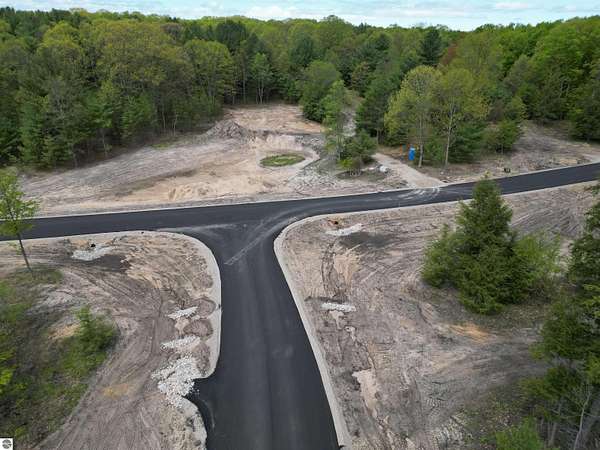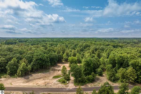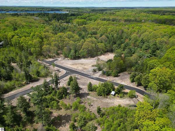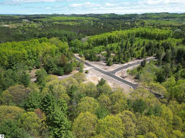 From Traverse City, follow Cedar Run Road west. Turn left on Cedarcrest Drive, go .3 miles. Turn right on Pheasant Run, go .2 miles. Turn left on Pinespar Trail. Continue straight into development on Leaning Birch Dr. Parcel on right.