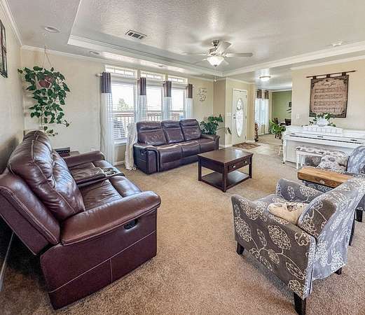 Est $1,897/moBEAUTIFUL & SPACIOUS 4bed/2.5bath, 2020 Solitaire double-wide home on 3.5 unrestricted acres with a 20'X30' insulated shop! So much to offer in this bright & open floor plan. Gorgeous kitchen with center island, pantry & tons of storage. Sequestered main bedroom suite with separate tub/shower & large walk-in closet. Big backyard with metal fence, sprinkler system, 20'X30'Insulated shop, 14'X20' metal storage building, 8'X10' chicken coop & more! Front porch added in 2024, Call today!