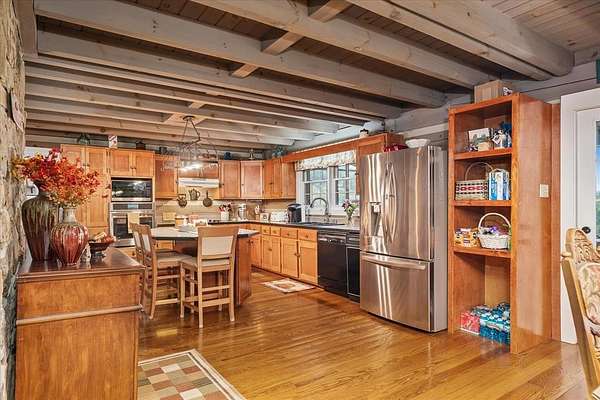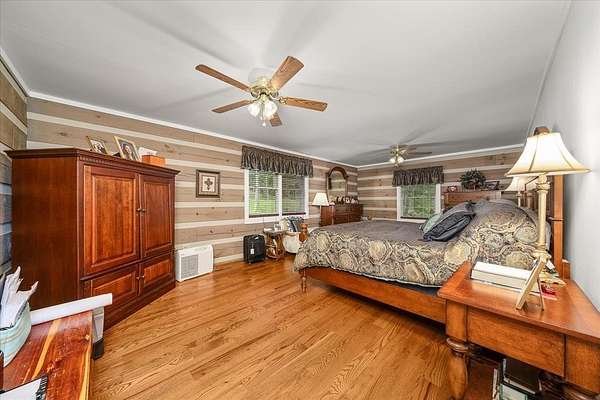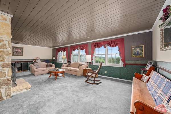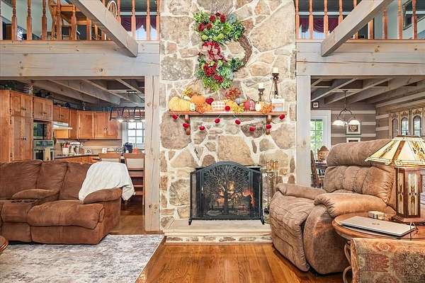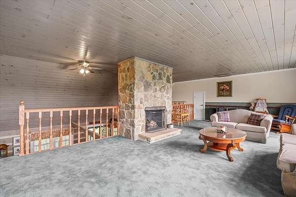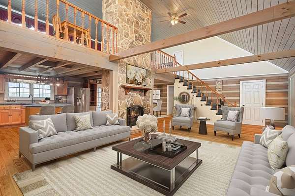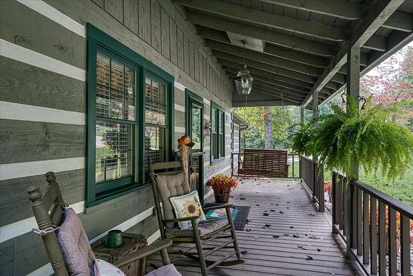 The essence of Tennessee Living! Honest Abe Log Home perched on a mountain side in a "Hallmark" neighborhood just a golf cart ride to golf & tennis club, with pool (2 blocks). Literally "heaven on earth". This spacious home "oozes" comfort & happiness. Main level master suite, soaring great room anchored with massive real stone fireplace (gas log), wrap around to kitchen & dining room. Fab screen porch with views for miles is your fav spot. Upper loft has its own fireplace. Bedrooms 2,3 & 4 round out main floor w/full bath. Lower level is finished with family rm., bedroom 5 & full bath (plus office and storage). Home stained 2023, roof 2014, new garage door openers 2022. Acreage is landscaped, private and even has a garden spot. Neighborhood is quiet and views are fantastic. Charming Livingston town square a few minutes away. This is a super nice home! Concrete drive, trex decking, aluminum rails, everything well kept and super attractive. New screens in porch.