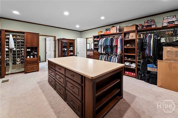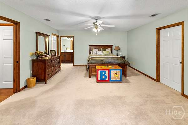 - Attic, Breakfast Area, Ceiling Fan(s), Double Vanity, Entrance Foyer, Garden Tub/Roman Tub, High Ceilings, Kitchen Island, Main Level Primary, Pantry, Primary Suite, Recessed Lighting, Separate Shower