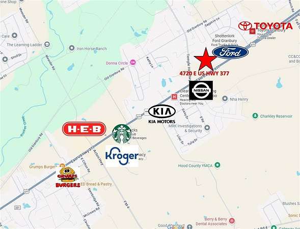 Incredible opportunity to own a high-visibility commercial tract in the heart of Granbury, Texas -- voted the Best Historic Small Town in America. This property offers over 350 feet of direct frontage on Highway 377 with an estimated daily traffic count exceeding 25,000 vehicles, making it a premier location for any commercial development. Situated within Granbury city limits, this parcel is ideally positioned between major national retailers and automotive dealerships. Just east of HEB, Kroger, Starbucks, Marshalls, and Granbury Nissan & Kia -- and west of Ford, Hyundai, Jeep, and Toyota dealerships -- your future business will be in thriving company. Surrounded by several new and expanding residential subdivisions, this property benefits from a strong customer base and exceptional long-term growth potential. Mature oak trees offer natural beauty and shade, while the rectangular shape and level topography provide flexible design options for development. Ideal for a variety of commercial uses, including, Automotive Sales, Gas Station, Office Building, Church, Industrial, Manufacturing, Warehouse or Distribution Center. Don't miss your chance to secure a rare, high-traffic location in one of Texas' most desirable small-town markets. This is THE spot for your next business endeavor.
