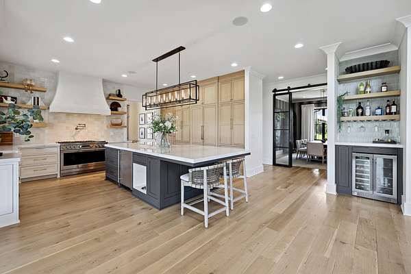 Welcome to one of Franklin's most extraordinary estates, placed on nearly 8 acres in an exclusive community w/ no HOA. This remarkable property offers refined design & serenity, less than 10 min. from Historic Franklin.This electronically gated, 5 bed/5.5 bath home includes an attached guest suite w/ full kitchen, laundry & private balcony. The main home is a showcase of craftsmanship: hand-milled natural oak floors, solid wood doors & trim, locally sourced custom cabinetry, and Marvin windows & doors. The open living space has soaring ceilings, a gas-log fireplace & a wall of windows.The chef's kitchen offers a massive sapienstone island, two sinks, built-in dog feeding station, Monogram appliances & double ovens. A separate bar area includes a wine fridge, while the spacious butler's pantry is fully equipped.The formal dining room has glass walls & handmade iron doors. The primary suite is a retreat, complete w/ wood-beamed ceilings, gas-log fireplace, & a full wall of windows that open to garden views.The en-suite features a walk-through California closet, split vanities, & luxury finishes. Additional interior highlights include a custom home office w/ built-ins, a large bonus room w/ balcony & built-in coffee bar.The basement level has a speakeasy-inspired design & includes a home gym,theater room,sauna & marble topped bar.There's also a wine room, full bath & temp controlled storage. Step outside to enjoy resort style amenities, including a saltwater pool w/ tanning ledge, waterfall, spa & 2 dramatic fire bowls. The outdoor kitchen features a wood burning fireplace & grill.The surrounding travertine patio is bordered by over $200k in professional landscaping.The home offers 6 raised garden beds, fruit trees & bushes, large chicken coup, 2.5 acre fenced pasture & a riding arena. From it's refined finishes to resort-caliber amenities, this one-of-a-kind estate offers a rare lifestyle.Up to 1% lender credit on loan amount when buyer uses Seller's Preferred Lender.