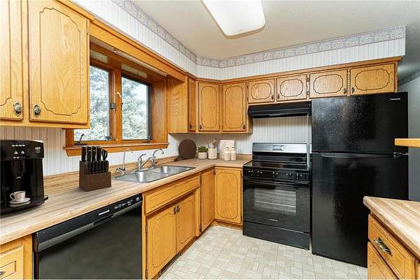 The main level features an open and practical layout with laundry conveniently located on the same floor. The kitchen is equipped with newer appliances, ready for your personal touch and everyday meals.