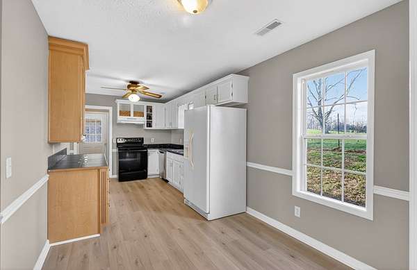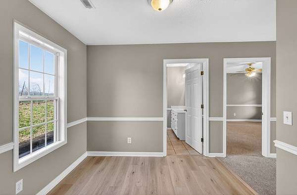 Est $1,245/moMove-in ready home featuring 2 oversized bathrooms and a functional layout. The property offers a beautiful front yard with farmland behind, providing a peaceful setting. Enjoy outdoor living with a covered front porch and covered patio. Additional features include a paved driveway and multiple storage buildings for added convenience.