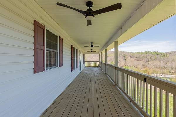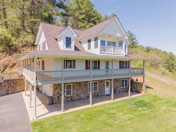 Experience Blue Ridge Mountain living with sweeping views of the historic New River and easy river access nearby. This well-maintained 4BR/3.5BA home on 2+ acres offers the perfect blend of privacy, scenery, and recreation. With over 3,300 finished sq ft, the open-concept main level features hardwood floors, a spacious living and dining area, and an upgraded kitchen with custom cabinetry, pantry, and built-in workspace, ideal for entertaining. The main-level primary suite includes a walk-in closet and spa-like bath with jetted tub. Upstairs offers a bright bonus room, private balcony with river views, two bedrooms, and full bath. The finished walk-out lower level includes a fourth bedroom, full bath, laundry, and patio access. Perfect to function as an in-law suite! Other great features to enjoy are the expansive wrap-around deck, paved driveway, 2-car garage, and instant water heater. Conveniently located between Galax and Independence, all desirable amenities are within minutes reach!
