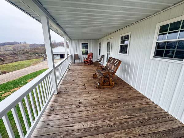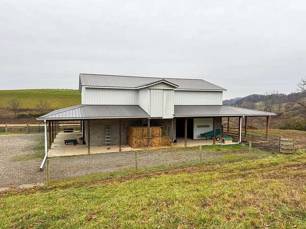 Take a look at the Smokey Row Patriot Farm, a beautiful, rolling 23 +/- acre property located in Gallia County, Ohio! The property offers a large home and barn, pole building and many out buildings. The land features scenic hills, gorgeous fenced pastures, a large pond stocked with hybrid bluegill and Red Ear sunfish, and a long, well-maintained gravel driveway that sets the tone as you enter the farm. The views from the front porch are tremendous--you can relax while overlooking the countryside and regularly watching deer move through the property! The newer home, built around 2016, includes two bed rooms, a spacious kitchen, large living room, office area, and two bathrooms. The home has gorgeous woodwork, great natural lighting, and an awesome basement which could be turned into multiple bedrooms! The possibilities are endless! A large barn with a concrete floor and high-quality crafted stalls provides excellent space for horses or livestock. An additional large pole building includes a fireplace, making it an ideal gathering place for guests, as well as a versatile storage or workshop area. Several smaller sheds offer housing for goats, chickens, and other animals. The property also includes a dock on the pond for easy fishing access, with years of quality angling ahead for family and friends. Beautiful timber stretches across the back of the property, creating a peaceful setting and offering great hunting opportunities. There is also another excellent build site on Boggs Road, giving the new owner added flexibility and possibilities for expansion, family, or investment. Electric is at the road, the property has public water, and the home is served by a newer septic system. With its combination of modern improvements, scenic land, abundant wildlife, and unmatched versatility, this rare homestead offers features you simply can't find all in one place. The farm is 25 +/- minutes to Gallipolis and Oak Hill; and 30 +/- minutes to Crown City and Jackson. The Sellers' Oil, Gas and Mineral rights convey. All showings are by appointment only and NO Sunday showings. All showings require 48 hours notice and Proof of Funds or a Pre-approval letter from a financial institution. If you have any questions or are interested in a private showing, please contact Brian Whitt at (937) 545-7764 or Josh Grant at (330) 341-0997 .