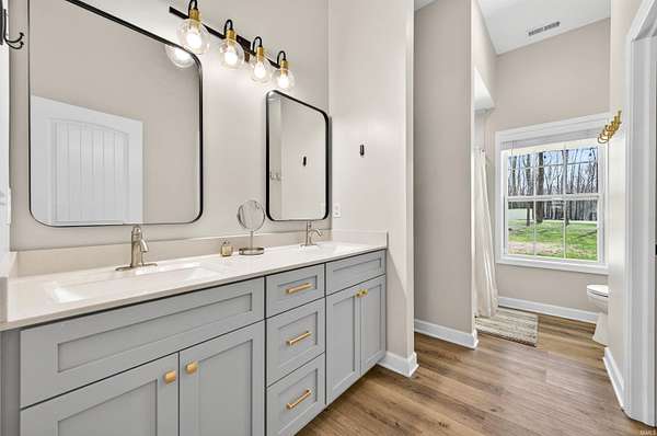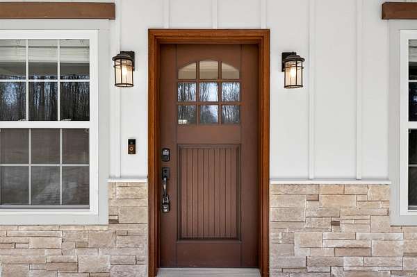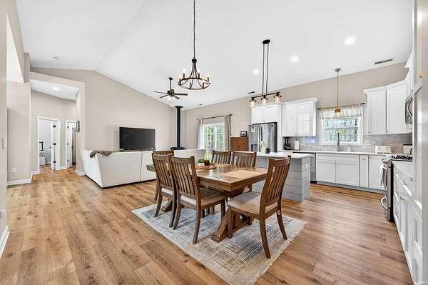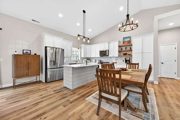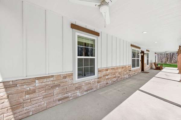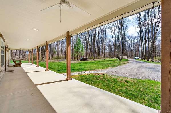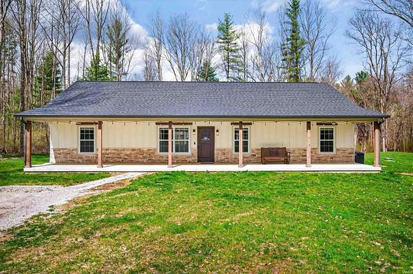 Homestead located in Bean Blossom on the iconic Covered Bridge Road with 7+ Acres! This lovely three bedroom, two bath ranch home is practically sparkling with the freshness of its recent construction in 2023. Stunning custom kitchen, featuring quartz counter tops and custom Amish made cabinets - open to dining and living room offers plenty of space to entertain. The master bedroom has an ensuite with a huge walk-in closet and double vanity. The front porch is really the show stopper though! Spanning the entire length of house and covered - enjoy your morning coffee or host a family dinner outside soaking in the 7+ acres of Brown County nature! Located just minutes from the Village Of Nashville with easy access to Greenwood, Bloomington and Columbus.