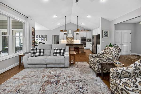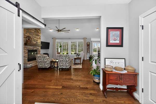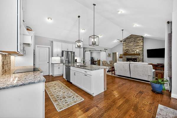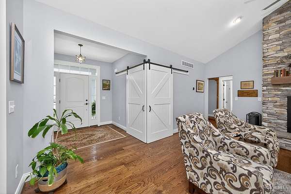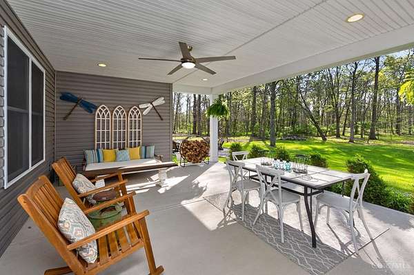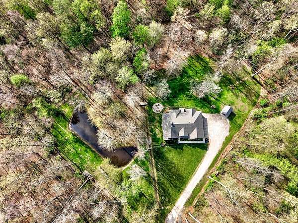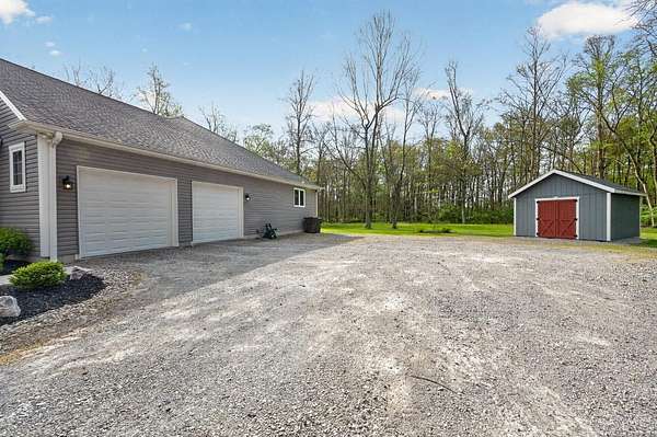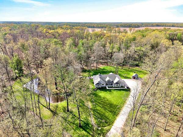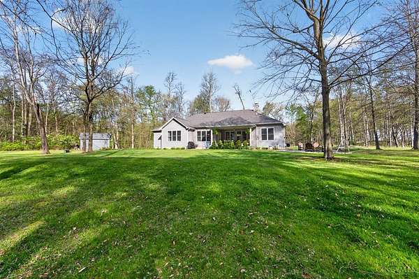 Amazing private wooded lot! 6.77 acres, Open floor ranch floor plan w/ 3 bedroom, 4 full bath home. Features two primary suites, including one with a soaking tub, walk-in shower, and large walk incloset, plus a second suite with low-entry shower. Full basement that is part Finished. Built with 2x6 construction and R-20 insulation, the home includes solid surface showers, whole house humidifier, and an in-home steam sauna. Oversized garage fits full-size trucks. Outside offers a stocked fishing pond, Weaver Amish mini barn, gutter guards, security cameras, and motion lighting. Electric is ready for a whole house generator and future pool.