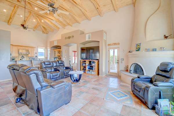 Custom built by Lancor, this Tuscan style former Parade of Homes model sits on 2.9 acres with endless mountain views! Spanning 4,135 sq.ft., it offers 4 bedrooms, 3 baths, and a living room with a custom fireplace a wet bar. The secluded Owners Suite features a kiva fireplace, private office, and entrance. You'll enjoy the gourmet kitchen with granite counters, Sub-Zero fridge and Dacor appliances. The formal dining room with fireplace is perfect for gatherings. Beautiful vaulted tongue & groove ceilings flow throughout the home. The In-Law Suite, hobby room, and media/gym room each have private entrances. Enjoy the tranquil courtyard with water feature and rooftop deck. The oversized 3-car garage and RV pad is large enough for all your toys. There's so much more! Don't wait, see it today