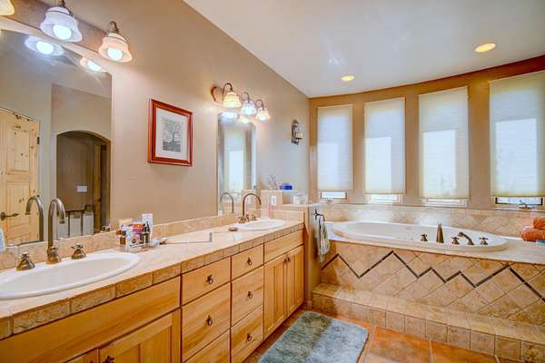 - Bathtub, Beamed Ceilings, Breakfast Bar, Cathedral Ceilings, Ceiling Fans, Dual Sinks, Family Dining Room, Great Room, Home Office, In Law Floorplan, Jetted Tub, Kitchen Island, Living Dining Room, Main Level Primary, Multiple Primary Suites, Pantry, Separate Formal Dining Room, Separate Shower, Soaking Tub, Utility Room, Wet Bar