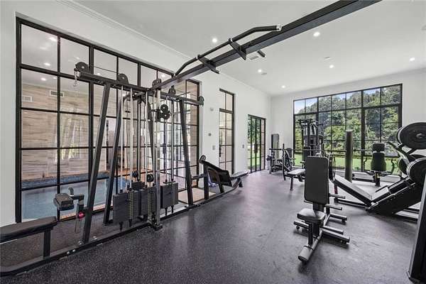 This estate offers an unparalleled blend of security, recreation, and refined living in the desired City of Sandy Springs. Fully fenced 6.58 acres with a perimeter of newly planted but maple trees, the grounds ensure total seclusion. A state-of-the-art Optex LiDAR outdoor intrusion detection system throughout the entire grounds, Savant home automation, Cellgate controller with remote access control, interior/exterior surveillance cameras, and upgraded fiber connectivity to the property to elevate both safety and convenience. These are just a few of the upgrades and improvements the owner has made after spending close to $3.5M in after-market expenses since purchasing from the builder. Built for entertaining and wellness, enjoy a private lake with fountain and dock, newly installed upper-level turfed sports lawn for soccer or football, a separate fenced lower yard that has been sodded court for pickleball or basketball, nature trails deisgned and created for walking or motor biking, and indoor amenities including a built-out area for a Full Swing golf simulator (builder's bowling alley removed), remote controlled 'swim inplace' asdjustable current lap pool (heated/cooled), basketball court, home gym, home theater with HD projector and screen, and dry sauna. Two private guest homes are seamlessly integrated into the estate (bed/bath included in total), and an elevator services every floor from the attic to the basement in the main home. Dual Kohler water-cooled generators provide peace of mind. The current owner has meticulously enhanced the property beyond its original build, resolving every nuance of new construction on this scale. Homes of this caliber are rare to market, and even rarer in execution. **Please note that all Buyers are to be pre-screened, along with their finances, before any showing appointments are scheduled and approved. DO NOT TRESPASS ON THE PROPERTY.