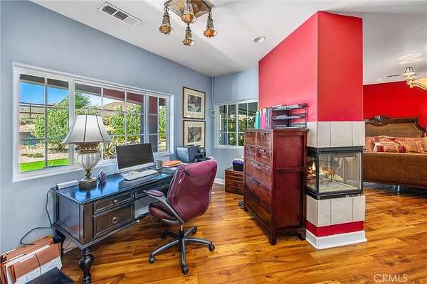 You truly can have it all! Welcome to 47298 Twin Pines Road, a bespoke executive residence set on over two-and-a-half rustic acres along the panoramic highway to Idyllwild, just minutes from the city. With more than 3,000 square feet on a single level, this one-of-a-kind retreat combines sophistication and modern luxuries with the freedom and privacy of wide-open rural living. Expansive living areas invite both relaxation and entertainment, while large windows frame the surrounding natural beauty and invite voluminous natural light. Outdoors, you'll find room to breathe, recharge, and enjoy the serene landscape that defines this sanctuary. Every space in this home was intentionally fashioned to exude both elegance and comfort. From the moment you enter through the cathedral-ceiling foyer, you're greeted with thoughtful design and elevated custom craftsmanship. A cozy living room highlighted by an alluring contemporary fireplace flows effortlessly into the entertainer's kitchen, featuring high-end stainless steel appliances, a spacious island with breakfast bar, and an inviting dining nook. A separate formal dining room with fireplace and an adjoining conversation den create ideal spaces for gatherings. This home offers 5 large bedrooms and 4 full bathrooms, including two expansive private primary suites with oversized walk-in closets and spa-like baths. The main primary also features an intimate retreat, fireplace, dual sinks, vanity, soaking tub, and a walk-in closet to die for. In different wings, three additional bedrooms and two full baths ensure comfort and privacy for family or guests. Outside, panoramic countryside views highlight an entertainer's backyard with multiple social stations and a full-length covered patio with recessed lighting--perfect for both intimate evenings and larger gatherings. A finished three-car garage with ample storage and a private driveway with reception pad offer plenty of room for vehicles, toys, and entertainment. The surrounding landscape embodies the charm of rural living, framed by ranches, wildlife, and sweeping hillsides. Whether you're seeking a refined getaway or a primary residence that feels like an escape, this distinctive home delivers the perfect balance of elegance and tranquility. Don't miss the chance to experience executive living against the backdrop of wide-open skies.