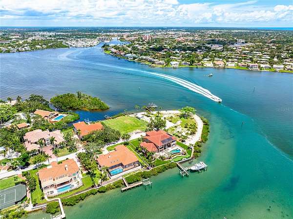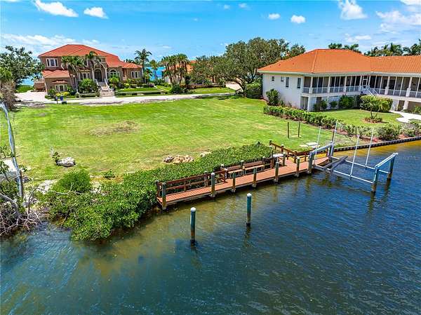Welcome to one of the most exclusive and breathtaking waterfront properties on Florida's Gulf Coast. Nestled within the prestigious Enchanted Isles, a private, gated island enclave with fewer than 20 residences. This extraordinary vacant parcel offers nearly 17,000 square feet of prime real estate to craft your custom luxury estate. Enjoy panoramic full bay views and direct access to world-class boating waters. With over 100 feet of pristine water frontage, a 55-foot private dock, deep water well, and an included 10,000 lb boat lift, this is a true boater's paradise. Anglers will love the fantastic fishing right off the dock, while nature lovers will be captivated by sightings of ospreys, playful dolphins, and gentle manatees, turning every moment into a serene escape. Set sail to your favorite waterfront dining spots or cruise out to Snake Island and the Venice Jetty in less than 5 minutes, with endless adventures just around the bend. Despite its tucked-away island feel, U.S. 41 is just minutes away, offering quick access to shopping, dining, and all the conveniences of modern living. Don't miss this rare chance to build your dream home in a setting so stunning, tranquil, and private it feels like a hidden paradise.