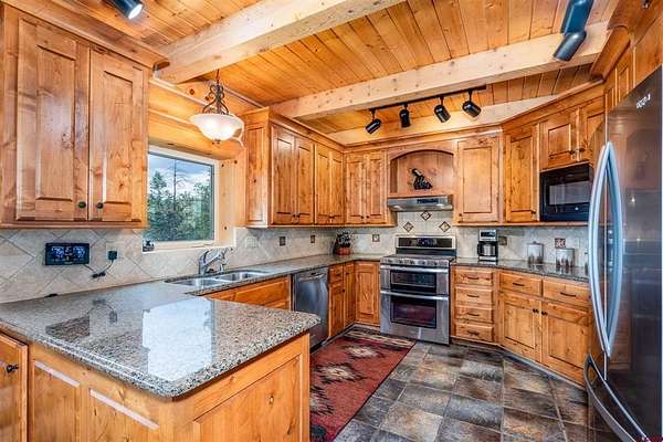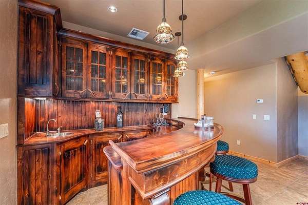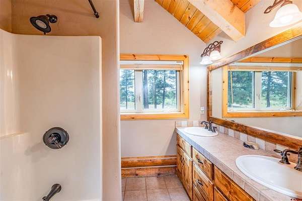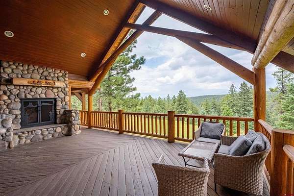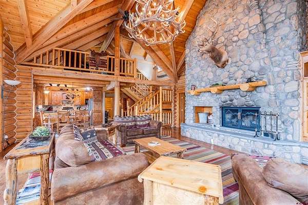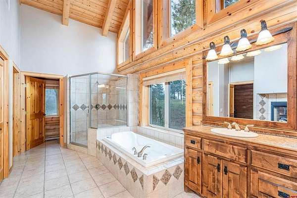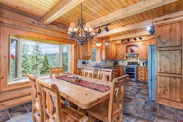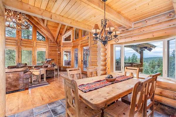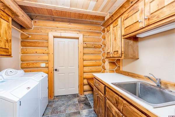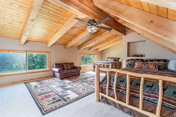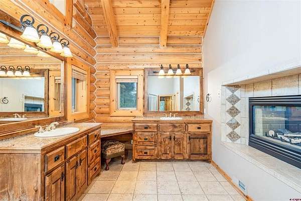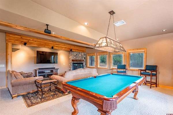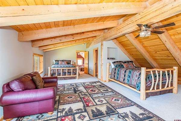 Ashley Blackmore, Blackmore Group, O: 970-444-2431, ashley@ashleyblackmorehomes.com, www.crenmls.com: Welcome to Eagle Nest Ranch, an exceptional 5,849 sq ft hand-hewn log estate nestled on over 52 private acres in the exclusive Alpine Lakes Ranch community, just 30 minutes from the vibrant mountain town of Pagosa Springs and minutes from the peaceful community of Chromo. This turnkey luxury retreat offers stunning panoramic views of Archuleta Mesa and snow-capped peaks, backing directly to BLM and National Forest lands for year-round access to hiking, fishing, skiing, and more. The home showcases authentic full-round log construction, soaring vaulted ceilings, and dramatic river rock accents, comfortably accommodating 15+ guests with two primary suites, a bunkroom loft, and multiple living areas thats perfect for multi-generational living or vacation rentals. Interior highlights include hardwood floors, custom built-ins, radiant floor heating, a gourmet kitchen with stainless steel appliances, granite countertops, a wine fridge, and a spacious pantry. The grand great room centers on a striking stone fireplace, flowing effortlessly to the dining area and covered outdoor deck featuring its own fireplace, built-in grill, and spa gazebo for year-round enjoyment. Additional amenities include a media/game room with custom wet bar, heated workshop, secure gun safe, heated 2-car garage, detached 4+ car shop, RV hookups, and an 8.25 kW solar system. Located near Pagosa Springs' world-famous hot springs, dining, and shopping, plus Chromo's renowned fishing and quiet wilderness access. Eagle Nest Ranch offers the perfect blend of luxury, privacy, and outdoor adventure for your ultimate Colorado mountain lifestyle.