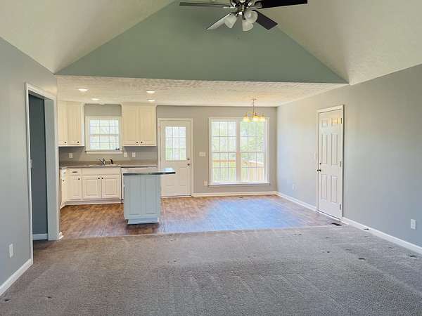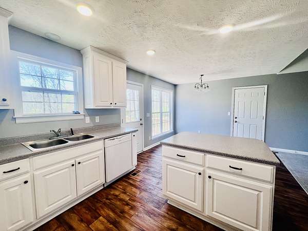 Beautiful FOUR bedroom, two bath home with open floor plan for spacious living! This home includes almost 3 ACRES including a great yard, trees and wooded acreage! The primary bedroom features a trey ceiling with ceiling fan, a walk-in closet and bath with tub/shower combination.The primary bedroom is separate from the other bedrooms. There is both a front porch for relaxing and a back deck for enjoying the back yard. A vaulted ceiling in family room area, recessed lighting and an island in kitchen make this home very spacious with lots of natural and room lighting. A dishwasher is included as well as a NEW electric stove. Extra storage includes a pantry just off the kitchen and a front hallway closet. The laundry/utility room provides more space, also. The two-car garage includes a door to the back yard, window for extra light and garage door opener.Richland School is only a few minutes away.