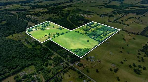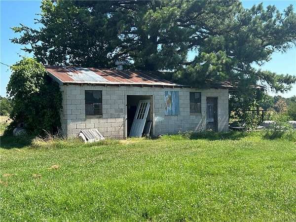 Hard-to-find 110 flat acres on Chewey Rd with 1,160 sq ft home being sold as-is. Property features paved frontage on west boundary with additional gravel road access, three ponds, full fencing, and is ready for cattle or horses. Home has a metal roof and steel siding. Located just 10 minutes from Siloam Springs, close to WOKA Water Park and Northwest Arkansas. Due to the home's condition, it will not qualify for FHA, VA, or RD financing. Great opportunity for ranching, recreation, or investment. Being sold as-is.
