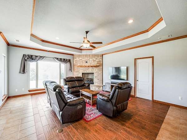 FANTASTIC CUSTOM RANCH HOME WITH ACREAGE AT A GREAT PRICE! 12 ACRES! AG EXEMPT! COLLIN COUNTY! PROPERTY QUALIFIES FOR FINANCING! 2 ND PARCEL OF 30 ACRES CAN BE SOLD TOGETHER! SUSTAIN ON YOUR OWN IN TIMES LIKE DURING COVID, GROW VEGETABLES, HAVE CHICKENS, CATTLE, HORSES, ENDLESS POSSIBILITIES! ENTIRE PROPERTY IS FENCED WITH BARBED WIRE! UPDATED! BEAUTIFUL ELEVATION WITH PORCH ALONG FRONTSIDE! OPEN FLOORPLAN! LARGE FAMILY ROOM OPENS TO KITCHEN AND BREAKFAST ROOM! FULL STONE FIREPLACE AND HEARTH! KITCHEN HAS GRANITE, CUSTOM CABINETRY, ISLAND, GAS COOKTOP! LARGE LAUNDRY ROOM WITH SINK, WINDOW! CUSTOM PICTURE WINDOWS IN LIVING, BREAKFAST AREAS TO WATCH THOSE BEAUTIFUL SUNSETS! LARGE MASTER BEDROOM! GOOD SIZE ROOMS! ENTERTAINING AREA ON THE SIDE WITH TIKI HUT AND FIREPIT! GREAT FOR ENTERTAINMENT! POSSIBILITY OF CREATING GREAT SPACES FOR WEDDINGS OR EVENTS! 1 HR TO DALLAS DOWNTOWN! AROUND 30 MIN. TO MCKINNEY! GROCERY STORES, WALMART! AGENTS, BRING YOUR BUYERS!