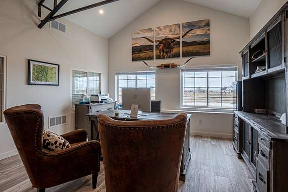 Additionally, the property benefits from 1.4 shares of Marshall Lake water rights, making it ideal for both agricultural and landscaping needs. These water rights are delivered to the 1-acre pond to ensure a reliable and ample supply of water for the hundreds of newly planted trees and bushes pumped through the 14,000 feet of drip irrigation along with sprinkler irrigation system for the pasture. The water is also essential for maintaining the lush greenery and supporting any agricultural endeavors undertaken on the land. This valuable asset not only enhances the property's functionality but also significantly increases its appeal and value.
