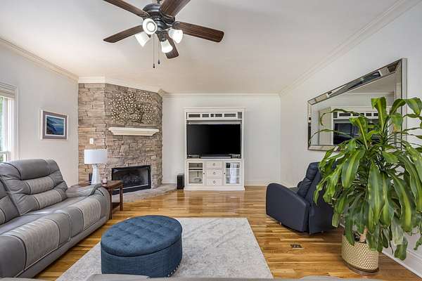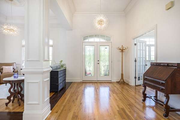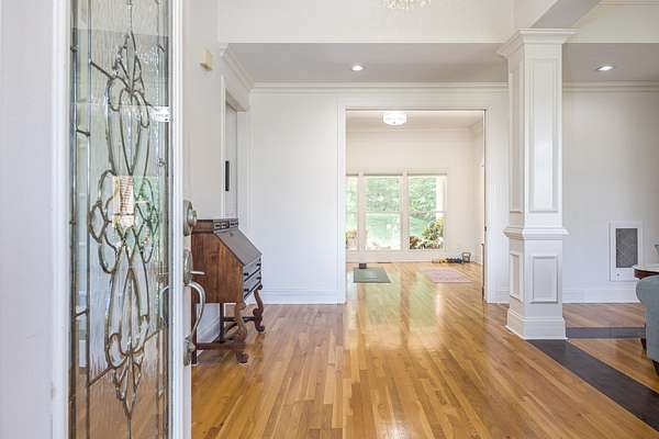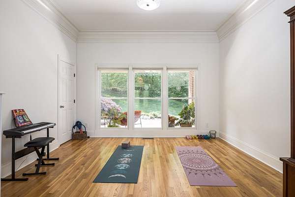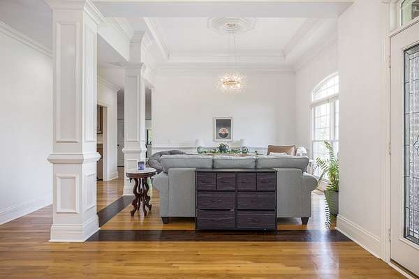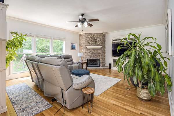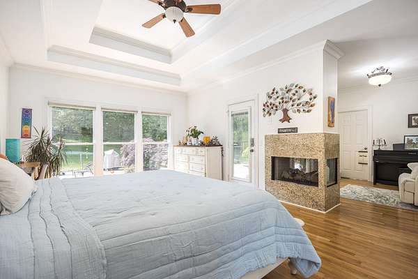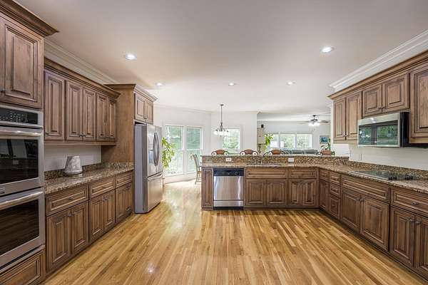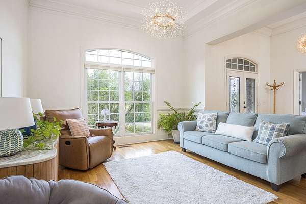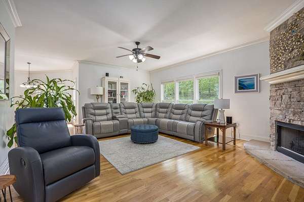 Inside, the home is thoughtfully designed with both comfort and functionality in mind. Multiple living areas including a sitting room, living room, den, dedicated office, and an additional flex space off the primary suite provide endless options for relaxing, working, or hosting. The spacious layout easily accommodates out-of-town guests and creates an ideal environment for entertaining or simply unwinding in your own peaceful surroundings.