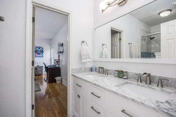 Thoughtful upgrades throughout the home enhance both functionality and style, including a whole-home water filtration system and fully replaced plumbing piping. The kitchen features a new over-the-range microwave, while the Jack and Jill secondary bathroom has been completely remodeled. Hardwood floors now extend throughout the entire home, complemented by custom closets in the secondary bedrooms. The primary bathroom includes an upgraded window, and retractable blinds have been installed throughout the house. Additional improvements include a garage organization system with fresh paint, along with an HVAC system and water heater that are both less than a year old.
