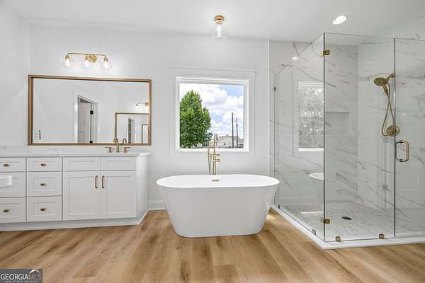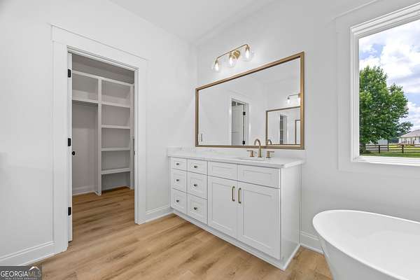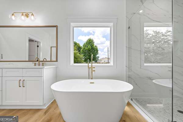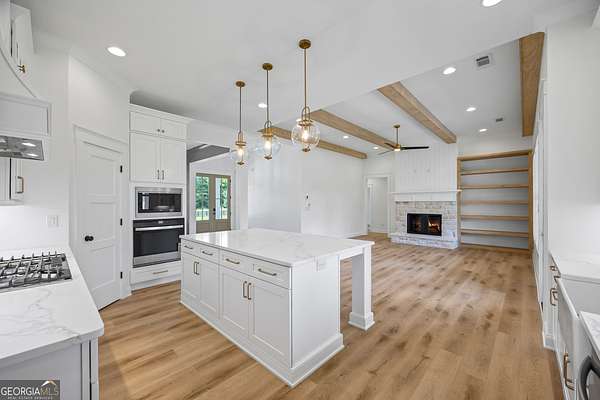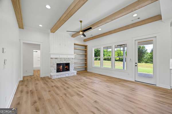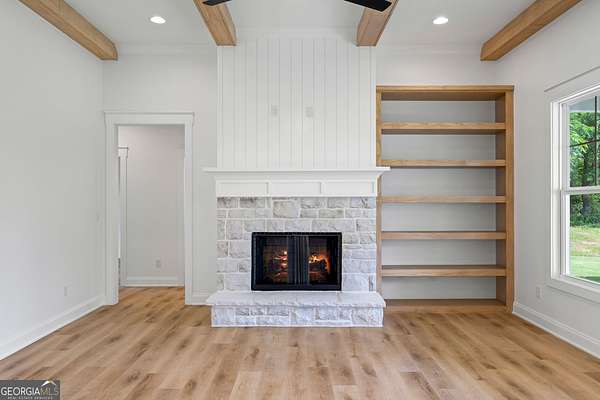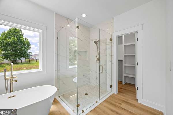 Stunning Modern Farmhouse in Exclusive Flat Creek Retreat - 5 Bedrooms on 5.5 Acres! Welcome to the Hickory Ridge II Plan, an exquisite modern farmhouse built by Brookstone Construction Group, situated on a sprawling 5.5-acre lot in the coveted Flat Creek Retreat community. With only nine exclusive lots in this development and just 4 remaining, opportunities like this are rare-act fast! Back on the market and available again! This home was previously under contract, but buyers now have a second chance to secure this incredible property. Construction is progressing beautifully, and we are approximately 30-45 days from full completion, making now the perfect time to plan your move. This beautiful home features 5 spacious bedrooms and 3.5 bathrooms, with four bedrooms and 2.5 bathrooms conveniently located on the main level. An additional bedroom and full bathroom are situated upstairs, providing flexible living space that is perfect for guests, entertaining, or a home office. Nestled in the highly sought-after Walnut Grove School District, this property offers school choice options-just across the road lies the boundary for Social Circle City Schools. Enjoy the benefits of top-rated education while residing in your private oasis. Set on 5.5 wooded acres, this property boasts incredible privacy and tranquility. You'll appreciate the serene natural surroundings that provide endless opportunities for outdoor activities and expansion, all while enjoying the freedom of no HOA-only light covenants to maintain the beauty of the community. Please note: The current photos in this listing are from a previous build of the Hickory Ridge II plan. Updated photos of this specific home will be uploaded and replaced by the end of next week as construction nears completion. Don't miss your chance-again-to create your dream home in this stunning location. Contact us today to schedule a private tour and explore the potential of your future home at Flat Creek Retreat!