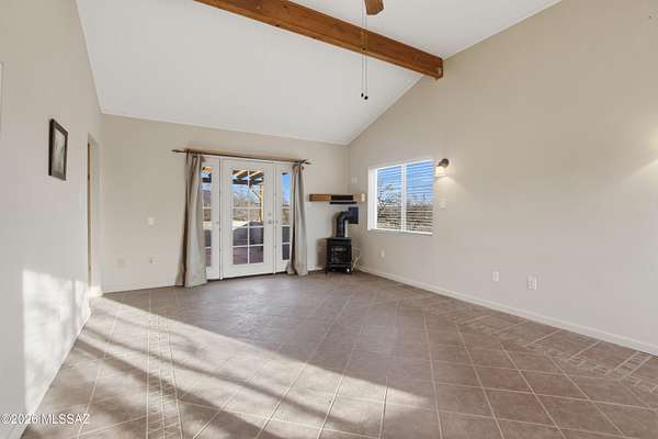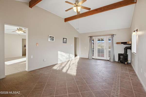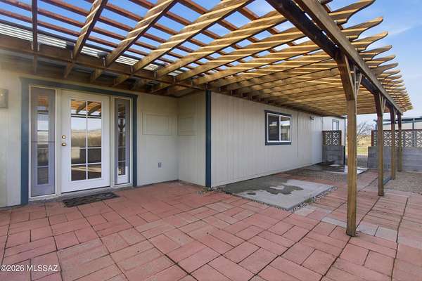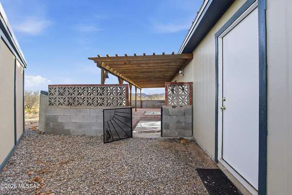 Bungalow-style gem on 5.55 fully fenced acres with stunning mountain views in every direction! This one-year-old home features a spacious great room, dual-pane windows, ceiling fans, and a relaxing covered porch. Most buildings have upgraded metal roofs, and the carport is reinforced for solar. Enjoy an orchard, privacy gate, dugout ponds, and irrigation throughout. A pad is ready to pour for a greenhouse, workshop, or expanded carport. Includes a 12x10 storage shed and plenty of space to park an RV or build a second home. USDA Loan Eligible Property! A truly special desert retreat off paved Dragoon Road!Seller may be open to considering buyer concessions with an acceptable offer.