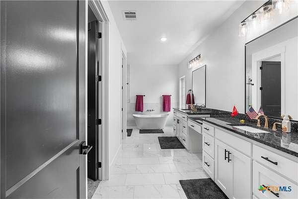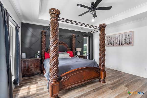 - Built In Features, Ceiling Fans, Crown Molding, Custom Cabinets, Granite Counters, Soaking Tub