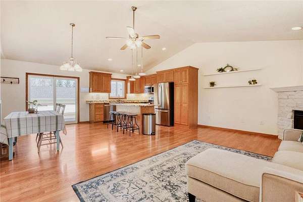 This is the one you have been waiting for! This home has been meticulously maintained with many improvements over recent years. Entering the home you will notice the open floor plan with lovely kitchen, dining area and living room full of ample light. The main floor also, includes two nice sized bedrooms, a full bath and laundry room giving you all living facilities on one level! The basement features new carpet throughout (2025) a large family room and two bedrooms. Outside you will notice the front porch, patio and deck, perfect for enjoying your 1.5 acre lot with fruit trees, flower and perennial gardens. Other notable improvements include roof and gutters (2024) Water heater (2023) Kitchen appliances (2023) Water softener and water filtration system (2026) washer and dryer (2022) garage door (2023) you wont want to miss your opportunity at this one! Please see supplements for additional notes about the home and property
