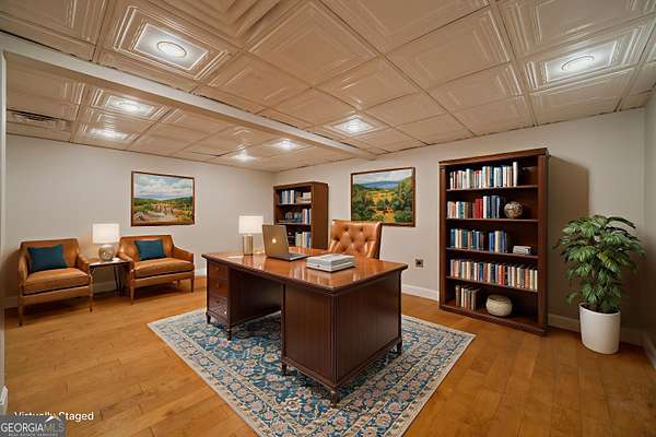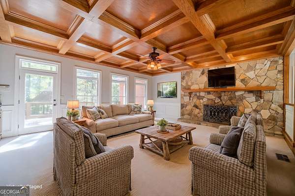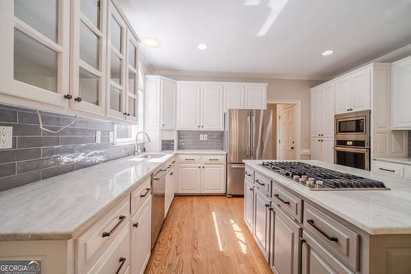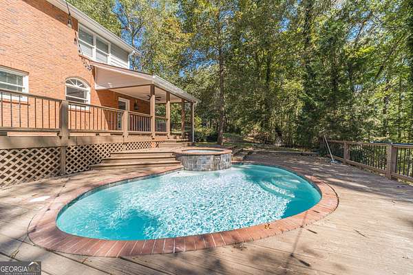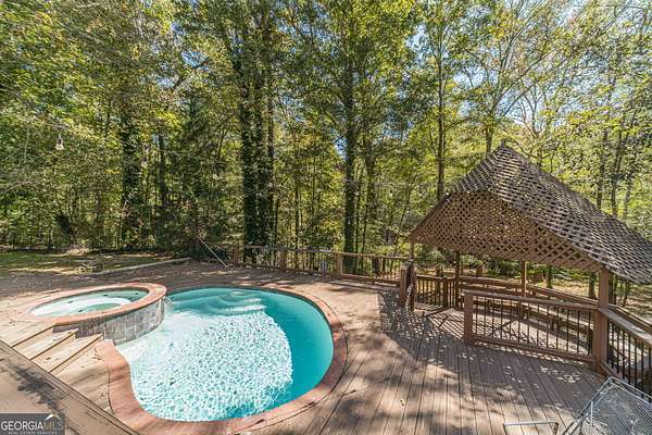 Welcome to 4745 Matthews Park Drive, a truly exceptional home in Snellville. This 4-sided brick beauty welcomes you with a large front porch and a light-filled interior designed for both comfort and entertaining. The home is situated on over 10 acres with an additional 10 acres to convey with the sale of the home, offering more than 20 acres in total. This property combines timeless design with modern comfort and has been thoughtfully updated for today's lifestyle. Inside, you'll find fresh interior paint, new carpet, and new light fixtures throughout. Step inside to a light-filled two-story foyer where natural light pours in. To the right of the foyer is a formal dining room that flows into the kitchen perfect for gatherings and special occasions. The kitchen is designed with both function and style in mind, showcasing granite countertops, ample cabinetry, high-end stainless steel appliances, and a breakfast area. The main level also features a spacious family room with a cozy fireplace and built-in wet bar, coffered ceilings and plenty of windows for natural light creating the perfect space. The owner's suite is conveniently located on the main floor and offers its own fireplace, creating a warm and inviting retreat. The spa-like bath offers double vanity, soaking tub, walk in closet and private sunroom with access to the back deck. Upstairs, two generous bedrooms are connected by a Jack-and-Jill bath. The finished basement offers a full bathroom and versatile flex space ideal for a home gym, office, theater, playroom, or guest suite. Outdoor living is exceptional with a wonderful large back deck overlooking the inground swimming pool with hot tub, which has been freshly replastered, and tranquil views of the creek. The home also boasts a new roof with gutters and pool/spa heater. The expansive acreage provides endless opportunities for recreation, gardening, or simply enjoying the peaceful surroundings. This home is a rare find in Snellville-offering a peaceful, private setting with modern updates while remaining conveniently close to schools, shopping, dining, and major highways for easy access.