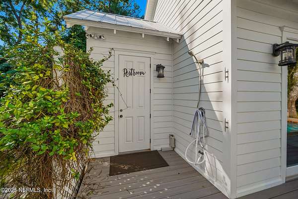 Like no other property in Ponte Vedra Beach. Tucked away on a very private and wooded 12-acre estate, this custom home-designed by Cronk Duch Architects-blends timeless farmhouse style with modern luxury. The property includes a detached studio apartment and separate pool house, offering a total of 5,455 square feet of beautifully crafted living space. Features include reclaimed heart pine floors, metal roof, whole-house generator, and security gate. The open floor plan is ideal for entertaining, flowing seamlessly to outdoor living spaces with porches, outdoor fireplace, heated pool, separate jacuzzi, and a stunning lit up fire pit area. Chef's kitchen with two ovens and two dishwashers. Add'l highlights include a chicken coop, extra storage building, and a shared driveway with a neighbor-each on their own 12-acre parcel. Live in the country at the beach-truly one-of-a-kind! You can build additional ancillary structures on the property, but not subdivided.