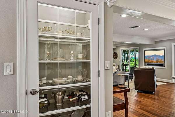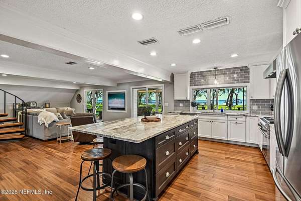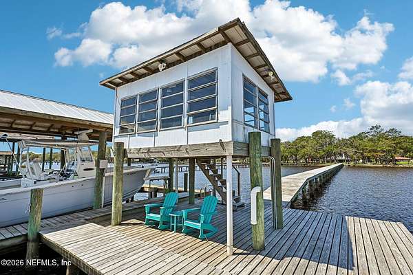 RIVERFRONT!! There's something about life on the water that just slows everything down in the best way--and this St. Johns River property in Fleming Island captures that feeling the moment you arrive. Down by the water, the setup is ready for serious river living. Your own dock with boat house and covered boat slip/lift along with a shared dock agreement, reducing maintenance and expenses. Complete with electricity, fridge, and TV--makes it easy to spend entire days (or nights) by the water. The 10,000 lb boat lift, fish cleaning station, and small boat ramp (perfect for jet skis, skiffs and kayaks) round out a space that's built for both fun and function. The dock was rebuilt in 2018, and the setting feels like a front-row seat to nature, with manatees and redfish often gliding by, osprey nesting right near the dock, deer and even peacocks making regular appearances. Set on 2.13 acres, this home isn't just a place to live, it's a little slice of everyday escape. Long, paved driveways lead you in, with plenty of room for guests, hobbies, and all the toys that come with riverfront living. There's even a massive workshop with four bays and a separate tool shop--perfect for anyone who likes to build, tinker, or just have space to spread out. Inside, the home has been thoughtfully updated and designed for both comfort and gathering. Bamboo floors run throughout much of the home, adding warmth and durability, while natural light pours in and draws your eye straight toward the water. The kitchen is truly the heart of it all, featuring a huge island with storage on both sides, a walk-in pantry with a warming drawer, Thermador appliances including a 6-burner gas range and dishwasher, a commercial-grade hood, and composite sink. It's the kind of space where cooking turns into lingering conversations. The layout offers flexibility with 3 bedrooms plus a loft that can easily serve as a 4th bedroom, along with 3 full baths and 2 half baths. Upstairs, the loft and bonus areas create a private retreat, complete with a cool spiral staircase, balcony access, mini-split A/C, and a large bathroom with a whirlpool tub and a large tiled shower. Downstairs, the primary suite is its own sanctuary with bamboo flooring, direct access to the back lanai, and a beautifully finished bathroom with a double vanity, granite counters, a walk-in closet, and a luxurious floor-to-ceiling tiled shower with stone flooring. And then there's the outdoor living--where this home really shines. The screened-in back porch with pavers, a gas fireplace, and a convenient serving window from the kitchen is made for relaxing evenings and weekend get-togethers. There's even an outdoor half bath and a doggie door, because every member of the household deserves easy access to the good life. Beyond everything that's already here, the property also offers future potential. The front portion of the lot can be separated, giving you options down the line whether you're thinking of building, investing, or simply holding onto the space for added privacy. Ideally located in the heart of Fleming Island, near top-rated schools, golf, shopping, and dining. Major updates--including a new roof, plumbing, septic system, and well pumps--have already been taken care of, along with features like a tankless water heater, water softener, and aerator system. Two A/C units keep things comfortable, and the turnaround driveway and attached two-car garage add everyday convenience. This is the kind of home where mornings start with coffee by the river, afternoons turn into boat rides, and evenings end by the fire with the sound of the water in the background. It's not just a property--it's a lifestyle that's ready to be lived.