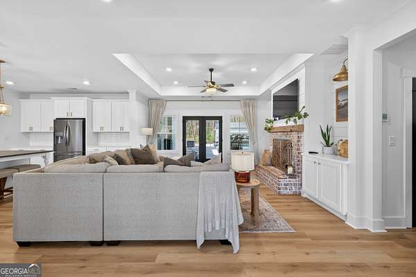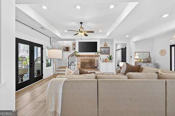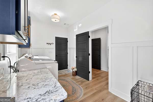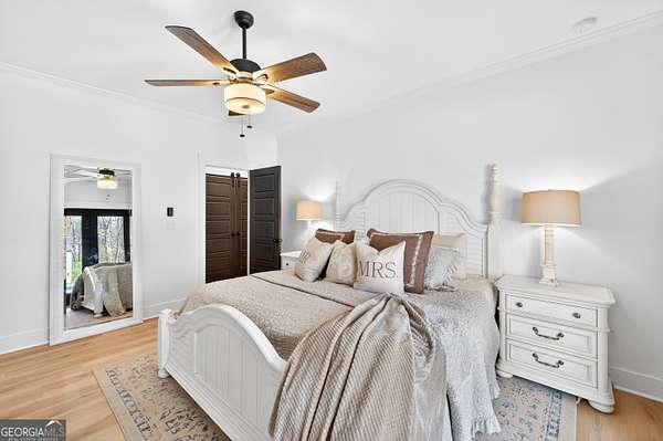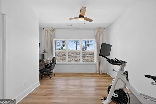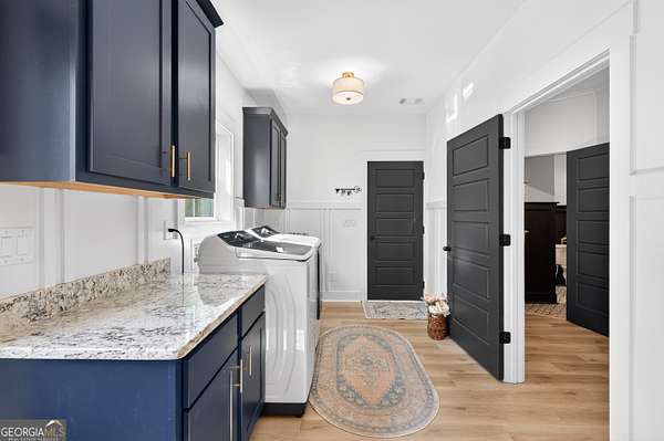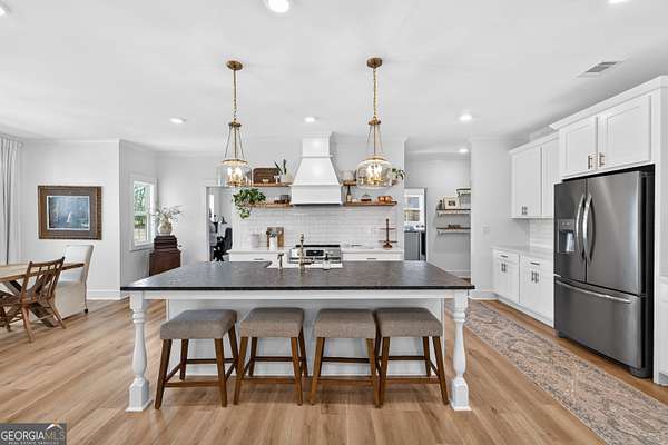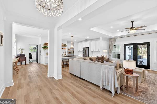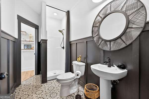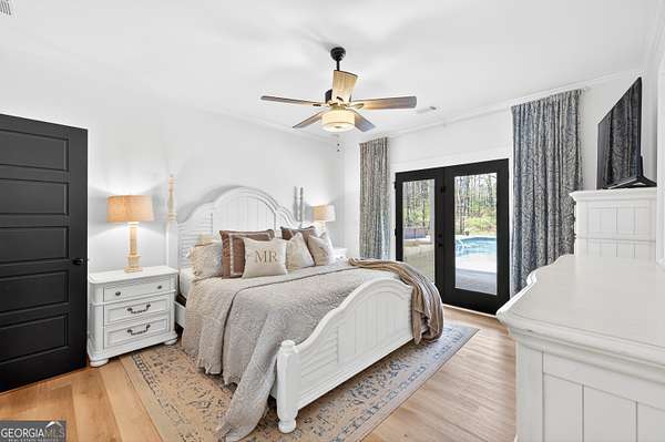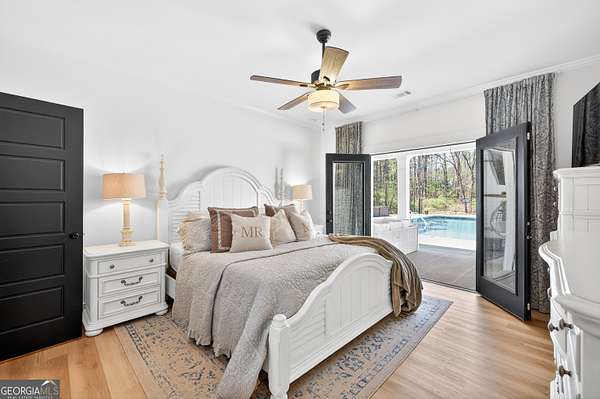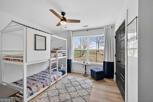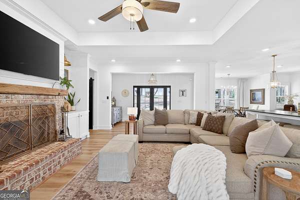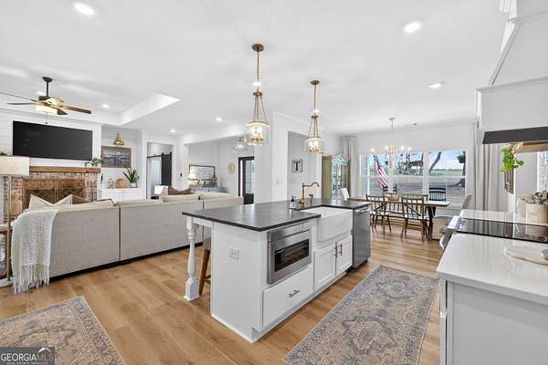 Finding a private estate that balances high-end architectural design with the expansive freedom of a rural landscape in Monroe, Georgia, often forces a choice between modern luxury and homestead versatility. This property serves as the definitive solution, situated on two scenic acres of partially wooded, level land that offers a rare, non-HOA environment. Tucked away on a quiet street at 4746 Bentley Road, this masterpiece of modern design is located just ten minutes from the boutique shopping and family-owned dining of Bethlehem and the local stores of downtown Monroe. This residence provides immediate access to area landmarks like George Walton Academy and Monroe Area High School. The home's interior is a masterclass in open-concept living, centered around a light-filled great room featuring a floor-to-ceiling brick fireplace with a reclaimed timber mantel and custom shiplap accents. The great room opens to a chef's kitchen, perfect for hosting gatherings of any size, and showcases white shaker cabinetry, champagne gold hardware, and a professional-grade island with a dark, textured countertop. The main level is thoughtfully designed for longevity and flow, featuring a dedicated home office, a mudroom, and a primary suite that serves as a true sanctuary. This primary suite features direct access to the outdoor living area and a spa-like bathroom with a soaking tub and walk-in shower. Outdoor amenities define the exterior experience, featuring an in-ground saltwater pool surrounded by generous front and rear porches that create a premier environment for entertaining. An oversized detached workshop and garage includes both power and water, offering an ideal space for automotive pursuits, RV storage, or DIY projects. This Royal Oaks Design floor plan maximizes natural light through black-framed French doors and features modern tray ceilings, a playroom, and a large upper-level loft. Whether enjoying the sunrises over the neighboring tree farm or exploring the balance of grassy openness and natural woods, this property offers the privacy you crave without sacrificing convenience.
