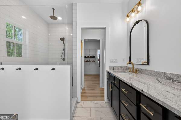 - Double Vanity, Master On Main Level, Separate Shower, Soaking Tub, Tile Bath, Walk-In Closet(s)
