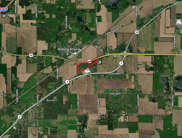 This ±44-acre property located at 4747 Oak Knoll Rd in Rolling Prairie, Indiana, presents a prime opportunity for development in a rapidly expanding commercial corridor. Boasting road frontage on three sides-north, west, and south-the property offers excellent accessibility and visibility, with convenient access via Highway 20, East Oak Knoll Road, and N 450 E.