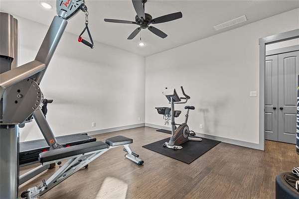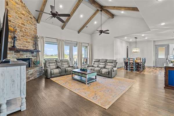 This Aledo residence offers the perfect blend of privacy, space, and timeless Texas appeal. Built in 2012 and set on a generous 13 acre homesite with a gorgeous winding tree lined road to the home. The expansive front porch is defined by a classic brick architecture and gives a peaceful sense of openness that defines Parker County living. Inside, the layout unfolds with comfortable elegance. Multiple living and dining areas create natural gathering spaces for everyday life, celebrations, and quiet evenings at home. Large windows invite soft natural light throughout the day, giving each room a warm, inviting feel. The private owner's suite provides a quiet retreat, while additional bedrooms and baths offer flexibility for family, guests, and entertaining. There is a room for every family activity including, office, media room, game room and an exercise room. For the large families needing 5 bedrooms, this home is for you.