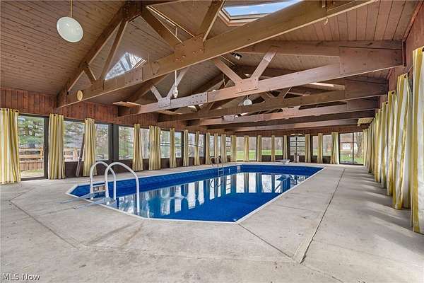CALLING ALL CAR ENTHUSIAST!!!! This is your opportunity to own a slice of heaven in Medina CSD!!! This home features 4 spacious bedrooms and 4 beautifully designed baths, where every detail has been thoughtfully designed with modern finishes and high-end touches throughout. From the moment you walk in, you'll appreciate the seamless blend of style and comfort. The gourmet kitchen is a show stopper with granite countertops and custom cabinets! The floor layout and upgrades speak for themselves! The Home has an in-home vacuum system and a retro basement perfect for entertaining! Outside is where this property truly shines. Nestled on 5.77 private acres, you'll find your own personal retreat complete with a fully stocked pond with a waterfall and a stunning inground/indoor pool (3 ft to 9ft range depth) in the 4 seasons room-perfect for relaxing evenings or entertaining all summer long. For car enthusiasts or hobbyists, this is a rare find: 4-car attached garage for everyday convenience and a Massive 4-bay detached 60x40 garage with 10'x10' doors and a concrete floor equipped with drains and room for up to 8 vehicles - Equipped with electric and built-in air nozzles-a dream setup for any car lover or workshop needs. Whether you're hosting guests, enjoying peaceful country living, or building your ultimate car collection, this property delivers unmatched versatility and value. Homes like this don't come around often-schedule your private showing today and experience it for yourself. Updates include: Entire Home Painting , Garage Painting, New Flooring, Updated Kitchen, New Lighting, Upgraded bathroom in basement, main level and primary bath upstairs, upgraded pool liner (2019), and New Roofs (2018-19) on all buildings and home. Septic was inspected and passed in 11/25 and 3/26, and had already been pumped and cleaned! Public Water Available at the Road! SOLD AS-IS - No Repairs to be done! Home Warranty Provided! Schedule a showing today!