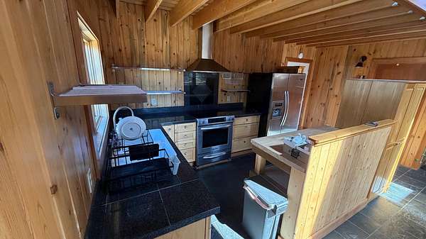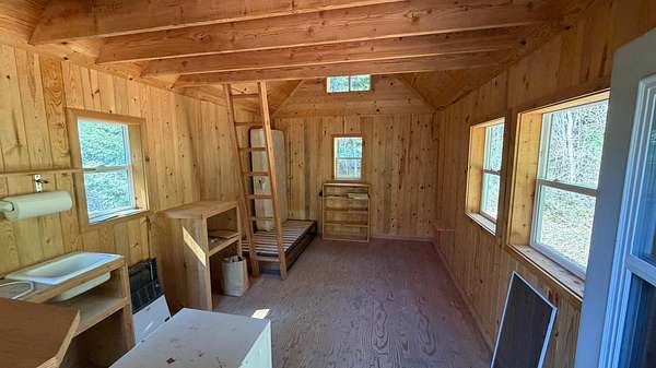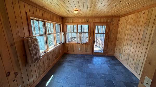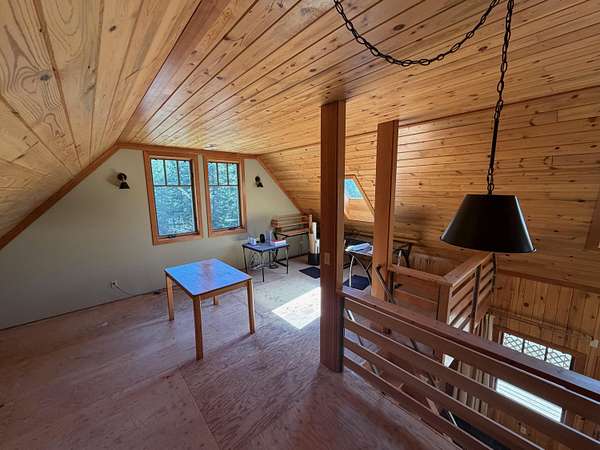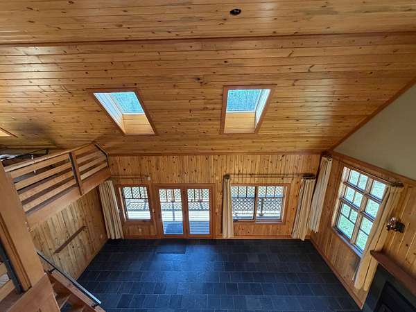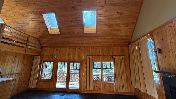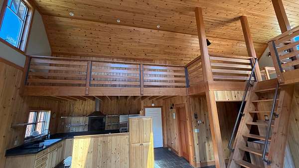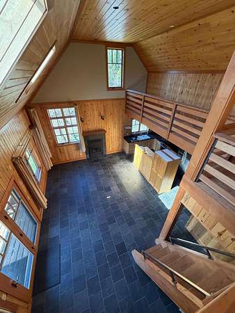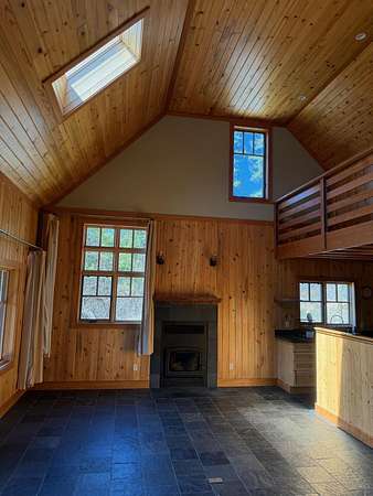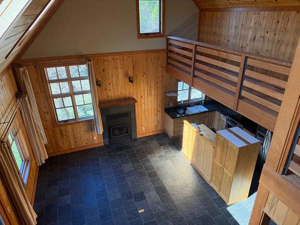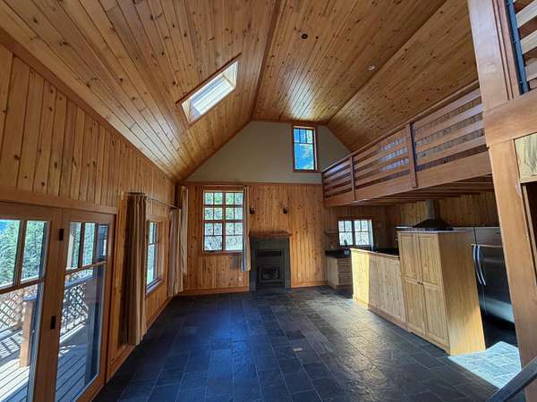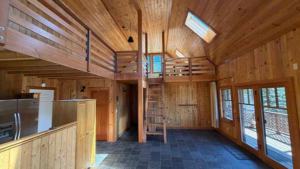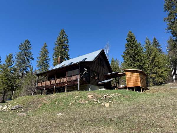 A one-of-a-kind hidden gem blends charming wilderness seclusion with modern ease. Custom design-build cedar clad chalet-type with timeless craftsmanship in an open-concept design, perfect for year-round living or vacation retreat. Unique mountain haven with connectivity to internet & grid power. Set on 30 timbered acres with hillside views, it offers a level entry, wood windows/doors, great room with fireplace, vaulted sky-lighted ceiling, radiant heated stone tiled floors, modern cabin kitchen, 1 bedroom, loft, 1.5 baths, laundry, deck, screened porch, full basement, woodshed, tiny dry-cabin, parking structure, generator, dug well & security cameras. Near amenities & ski resort for the ideal balanced lifestyle of restorative relaxation, recreational invigoration & purposeful living.