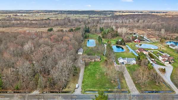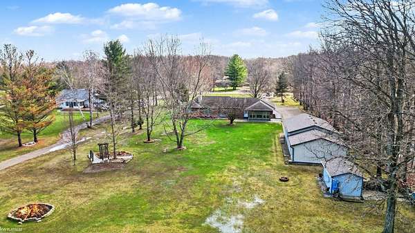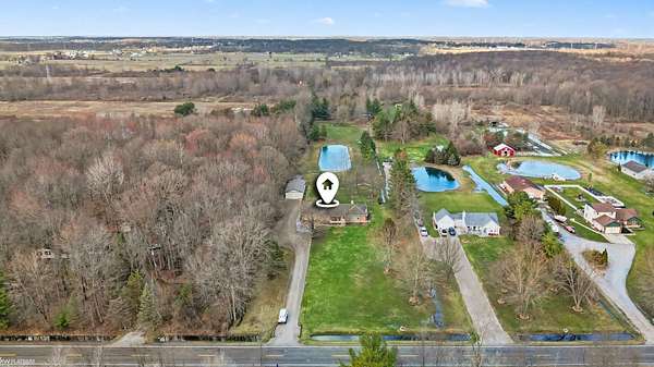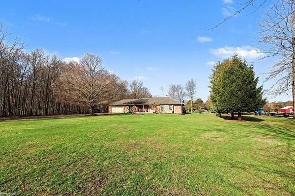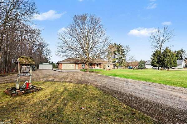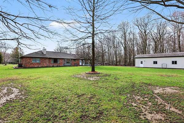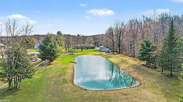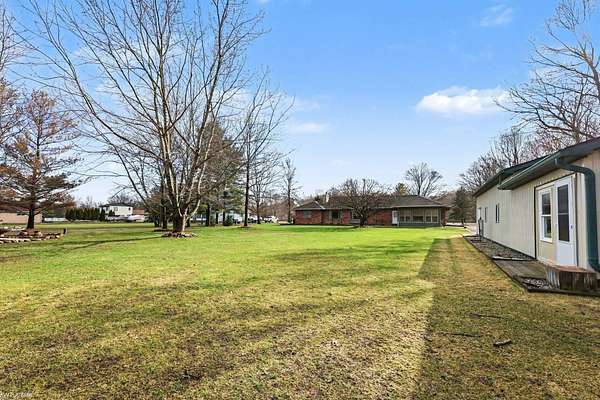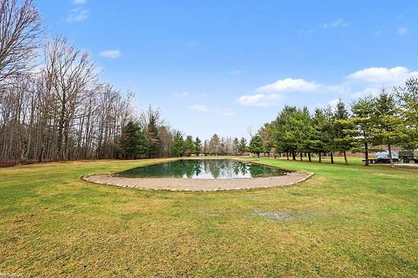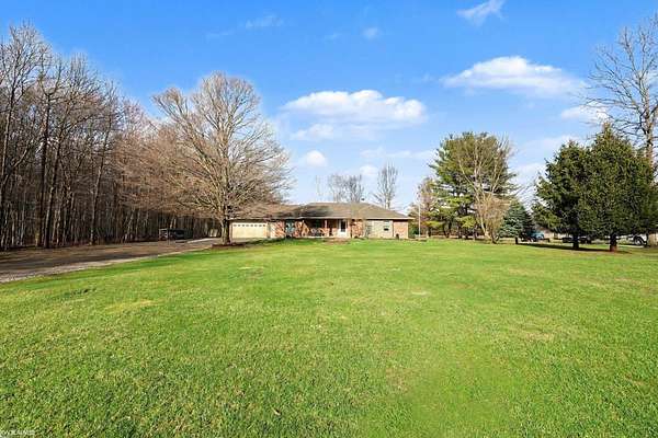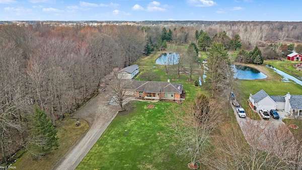 Nestled on over 5 acres, this well-maintained 1,700 sq ft brick ranch offers the perfect blend of comfort, space, and functionality. Built in 1992, the home features 3 bedrooms, a dedicated office, convenient first-floor laundry, and a bright four-seasons sunroom—ideal for enjoying peaceful views year-round. The property truly shines outdoors with a beautifully cared-for pond equipped with an Airmax Ecosystem aeration system, creating a serene and inviting setting. Need space for hobbies, storage, or a workshop? The impressive pole barn offers nearly 1,000 sq ft of storage plus an additional 480 sq ft heated workshop (pellet stove), along with an extra shed for even more flexibility. Inside, you’ll appreciate thoughtful updates including Pella windows (2020), granite countertops (2021), newer carpet, hot water tank, and major exterior improvements such as a new barn roof (2025) and chimney sweep (2025). A whole-house reverse osmosis filtration system adds even more value and peace of mind. The full basement is ready for your finishing touches—with a pool table included to get you started! If you’ve been looking for privacy, space, and a move-in ready home with room to grow—this is it. Immediate occupancy at closing.