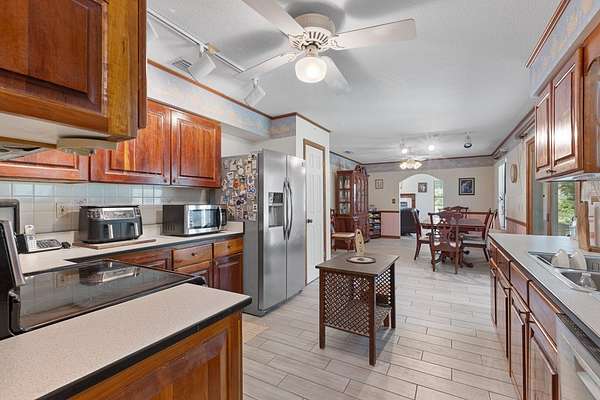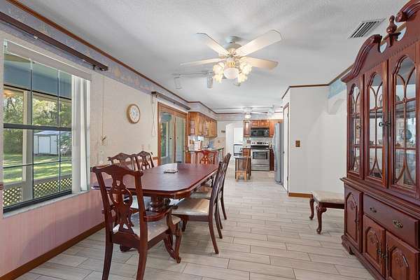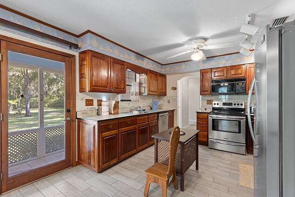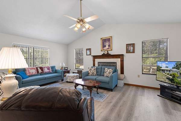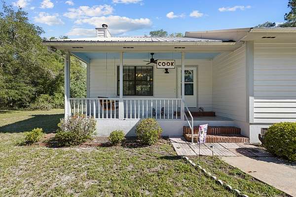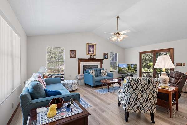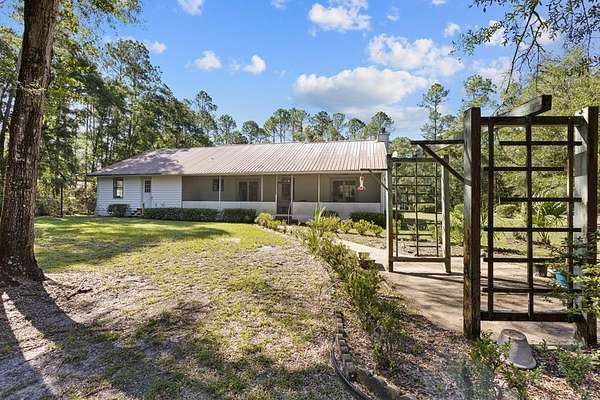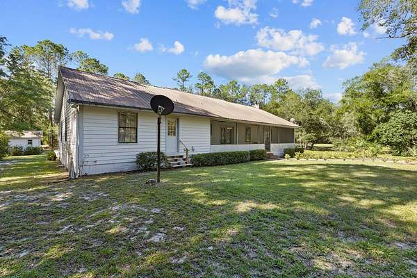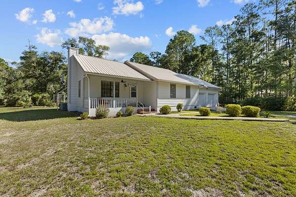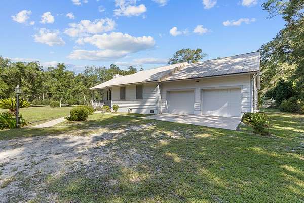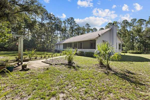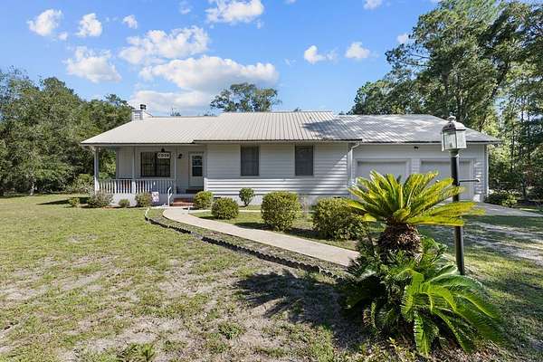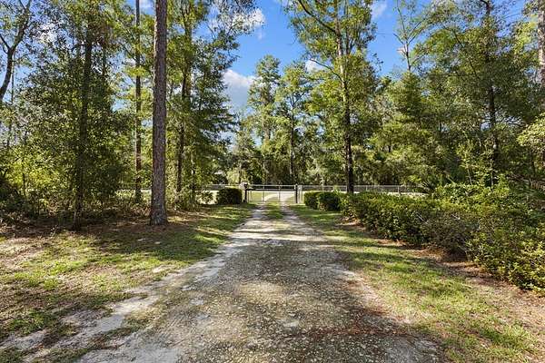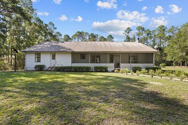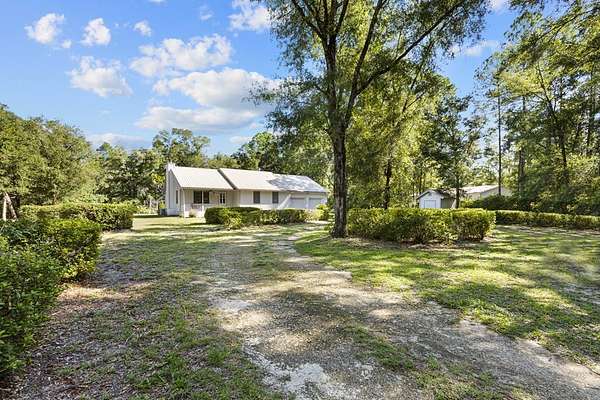 Welcome to this charming site-built home nestled on 3 acres of beautifully landscaped land in a private and peaceful neighborhood. This property offers a perfect blend of comfort and convenience, featuring 2 bedrooms and 2 bathrooms, including a recently remodeled bathroom for modern living. The home boasts new LVP and tile flooring throughout, enhancing its aesthetic appeal. Relax and enjoy the serene surroundings from the covered front porch or the screened-in back porch, ideal for outdoor entertaining. The living area is complemented by a cozy fireplace, creating a warm and inviting atmosphere. Additional amenities include an attached two-car garage with pull-down stairs for attic storage, a utility shed, and a pump house. The property is fully fenced with an automatic gate opener, providing security and privacy. Its prime location is less than one mile from a public boat ramp and the Suwannee River, with easy access to the Gulf, just 15 miles away. Conveniently situated approximately 5 miles from Old Town, this beautiful setting offers a peaceful retreat with easy access to outdoor activities and local amenities. This exceptional property is a must-see for those seeking a private, scenic, and comfortable home in a quiet neighborhood. Don't sleep on this one! Call today to schedule your private tour!