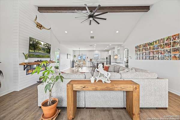 Escape to the country and discover this nearly 16 acre pristine rural property, complete with improved pastures, lush Klein grass, and a central pond. At its heart sits a stunning 1,939 sqft 3/2 custom-built home designed for comfort and entertaining, featuring a standing seam metal roof, soaring vaulted ceilings, and an open floor plan filled with natural light. The gourmet kitchen is a chef's dream, offering an oversized island with built-in mini fridge, gorgeous granite (called Leather Look) countertops, stainless steel appliances, and a walk-in pantry with outlets. Custom cabinetry flows throughout the home, while beautiful country views can be enjoyed from nearly every room, including the standalone tub in the primary bath. Step outside to relax on the covered back patio or under the oversized carport that doubles as a party pavilion for BBQs & Brandings. Beyond the home, you'll find a 24' x 32' detached garage/shop with electricity and water, and for all you equestrian or livestock enthusiasts, a brand-new 40' x 52' six-stall barn-perfect for horses, livestock, or hobby projects. This property blends refined craftsmanship with wide-open spaces, offering the peace of country living without compromise. This is more than a property, it's a lifestyle and is ready for its new owners so move in, saddle up, and start living your ranch dream today.