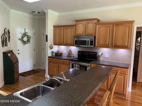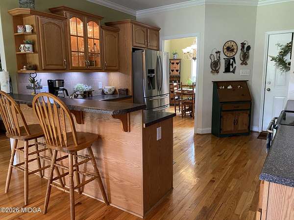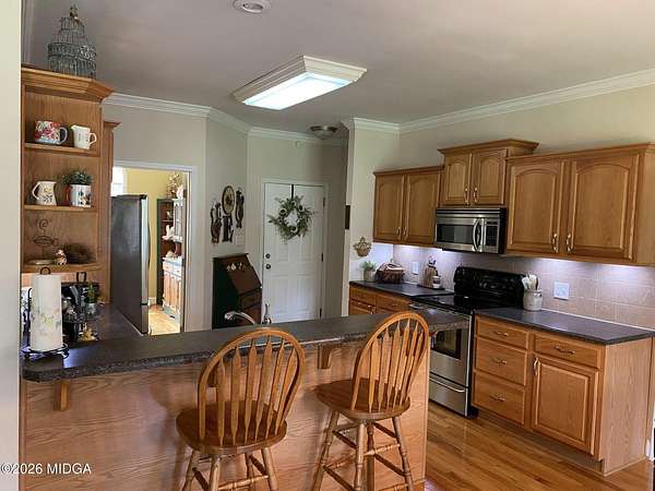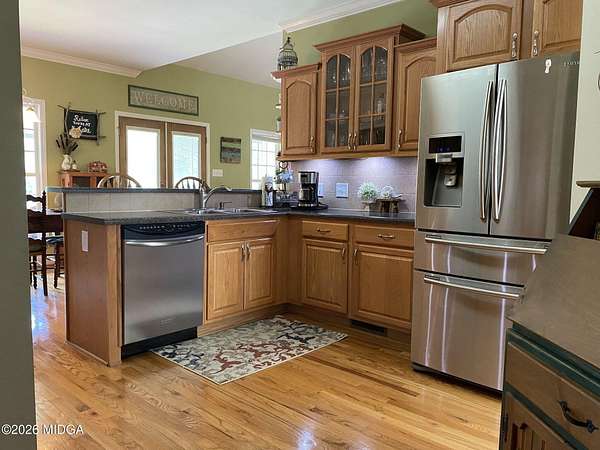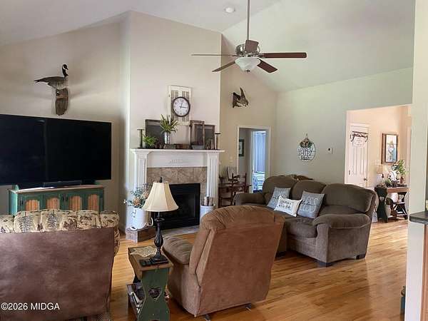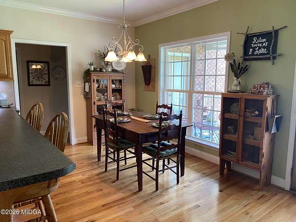 Welcome to refined waterfront living in the sought-after Harbour Shores community on High Falls Lake. Perfectly positioned along a quiet cove, this all-brick residence offers sweeping water views, generous living spaces, and thoughtful design for both everyday comfort and effortless entertaining. With a total of 4 bedrooms and 3.5 bathrooms, this home provides the ideal balance of private retreats and shared gathering spaces for family and guests alike. The main level features a spacious split-bedroom layout with 3 bedrooms and 2.5 baths, anchored by an open-concept living area filled with natural light and panoramic lake views. Whether you're hosting friends or enjoying a quiet morning, the screened-in porch provides the perfect vantage point to take in serene sunsets and beautifully landscaped surroundings. The fully finished walk-out basement adds 1,041 square feet of heated and cooled living space, complete with a private guest suite (1 bedroom, 1 full bath) and flexible space for recreation, media, in-law suite,or extended stays. An additional 959 square feet of unfinished storage with built-in shelving offers incredible functionality for hobbies, tools, or seasonal items. With 2,278 square feet on the main level and over 3,300 square feet of total heated living space, the home is designed to accommodate both relaxation and growth. Storage is abundant throughout, including a large, easily accessible attic. Car enthusiasts and hobbyists will appreciate the 3-car main-level garage, a basement-level garage bay, and a detached wired garage with electricity--ideal for a workshop or additional storage. Set along the shores of the picturesque 650-acre High Falls Lake, the property invites you to fish from your private dock, kayak peaceful waters, or simply enjoy watching wildlife drift by. Harbour Shores residents also enjoy access to a community dock and boat slip, brand-new pickleball courts, and a neighborhood park. Convenient to I-75 and zoned for highly regarded Monroe County schools, this exceptional lakefront home offers the perfect balance of tranquility, community, and accessibility.