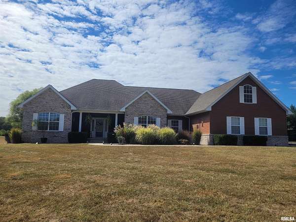 This stunning 4-bedroom, 3-bath ranch home with a den blends modern comfort with serene country living. Set on more than 7 acres with a private stocked pond, the property offers both elegance and tranquility. Inside, vaulted ceilings and expansive windows create a bright, open atmosphere. The living room and family room share a striking double-sided gas log fireplace, while the family room also features custom built-in cabinetry. The spacious kitchen boasts stainless steel appliances, an abundance of cabinetry, and a pantry--perfect for both everyday living and entertaining. The primary suite is a true retreat with vaulted ceilings, two walk-in closets, and a spa-like bathroom complete with a double vanity and oversized dual shower. A second bedroom includes a private ensuite for added convenience. Enjoy year-round relaxation in the all-season sunroom/den, which opens to a patio featuring a hot tub, brick fireplace, and fenced area. Additional features include a 3-car attached garage with a large storage loft above, a 3-sided carport, and plenty of outdoor space to enjoy the peaceful setting.
