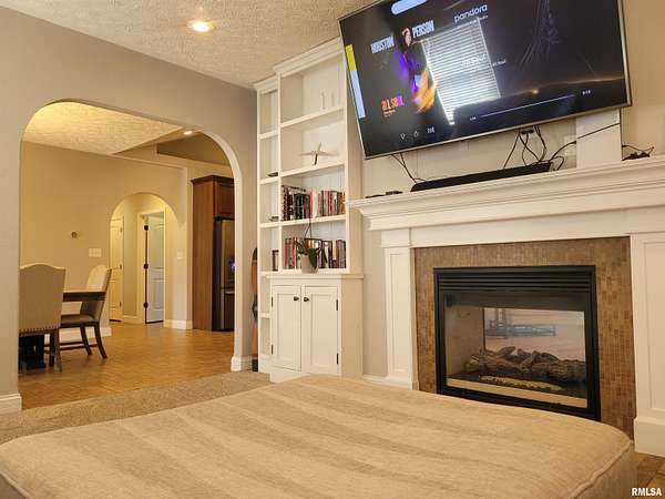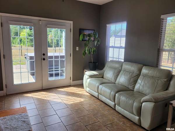 This stunning 4-bedroom, 3-bath ranch home with a den blends modern comfort with serene country living. Set on more than 7 acres with a private stocked pond, the property offers both elegance and tranquility. Inside, vaulted ceilings and expansive windows create a bright, open atmosphere. The living room and family room share a striking double-sided gas log fireplace, while the family room also features custom built-in cabinetry. The spacious kitchen boasts stainless steel appliances, an abundance of cabinetry, and a pantry-perfect for both everyday living and entertaining. The primary suite is a true retreat with vaulted ceilings, two walk-in closets, and a spa-like bathroom complete with a double vanity and oversized dual shower. A second bedroom includes a private ensuite for added convenience. Enjoy year-round relaxation in the all-season sunroom/den, which opens to a patio featuring a hot tub, brick fireplace, and fenced area. Additional features include a 3-car attached garage with a large storage loft above, a 3-sided carport, and plenty of outdoor space to enjoy the peaceful setting.