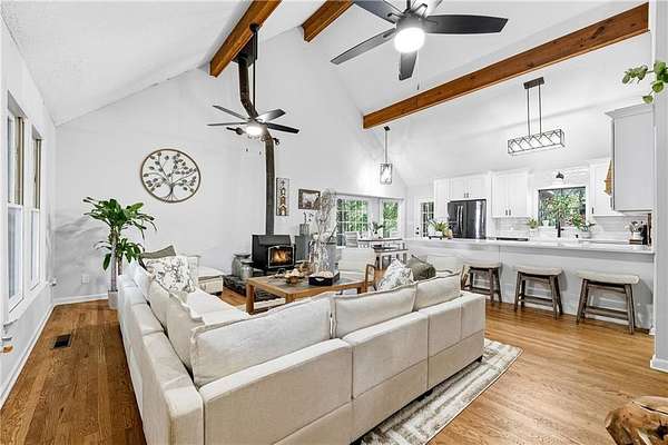 Looking for peace, privacy, and plenty of room to spread out? This beautifully updated home sits on 2.549 private acres with no subdivision and no HOA - just open space, fresh air, and endless possibilities. Enjoy the serenity of the countryside from your rocking chair front porch, surrounded by fully fenced front and back yards perfect for pets, play, or gardening. Step inside to discover full upgrades throughout, including new flooring, designer lighting, and updated plumbing fixtures that give the home a modern, move-in-ready feel. The open-concept living area flows seamlessly into the gorgeous kitchen, featuring quartz countertops, bar seating, and brand-new appliances - perfect for everyday living or entertaining guests. The main level offers three spacious bedrooms and two full baths, providing comfort and convenience for the whole family. Need extra space? The fully finished basement with a private entrance adds even more flexibility, complete with a large den and an additional bedroom ideal for guests, a home office, or a teen suite. All of this comes with the privacy you crave and the convenience you need - just minutes from local shops, restaurants, and schools. The seller is motivated and ready to make a deal, so don't miss this chance to make this peaceful, fully upgraded property your own!