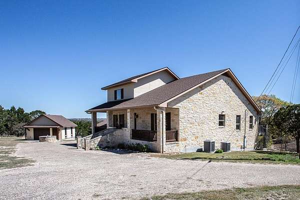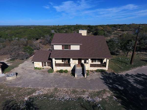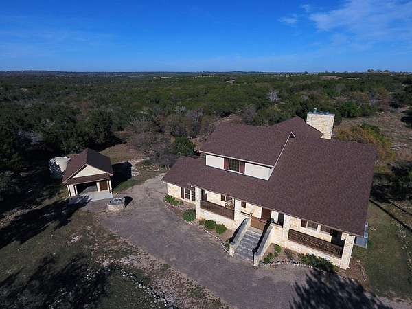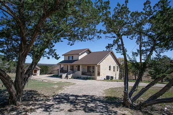 Set on 22.45 wildlife-exempt AC in the heart of the Hill Country, this stunning 4/3 stone home offers the perfect blend of comfort, privacy, & natural beauty. Thoughtfully designed to capture breathtaking views, the home features 3 fireplaces, 2 spacious living areas, warm wood floors & ceilings that create an inviting, rustic elegance throughout. The kitchen is equipped with granite countertops, a convenient bar for seating, & ample space for gathering & entertaining. The large primary suite provides a peaceful retreat, while expansive outdoor porches & multiple entertaining areas invite you to relax and take in the serene surroundings. Additional improvements include separate attached & detached garages with room for two vehicles & a water storage tank. The property is a haven for wildlife, with abundant whitetail deer, turkey, fallow, aoudad, & blackbuck roaming freely. 2 hunting blinds, multiple feeders, & a seasonal pond enhance the recreational appeal. Located within a gated neighborhood with newly paved roads, residents also enjoy access to a beautiful HOA river park complete with a pavilion and fire pit.