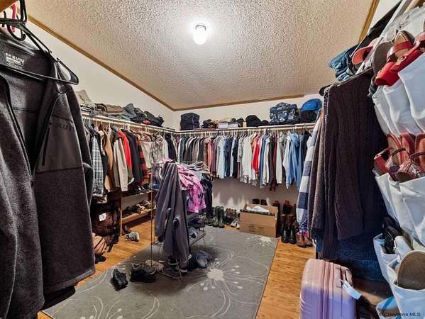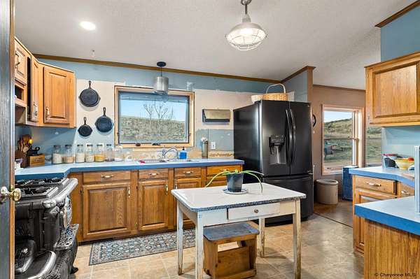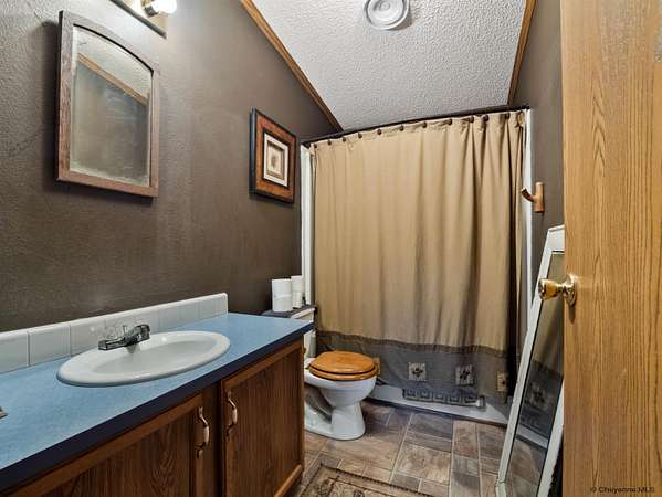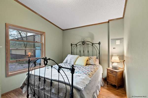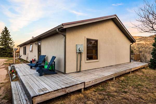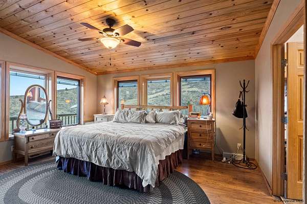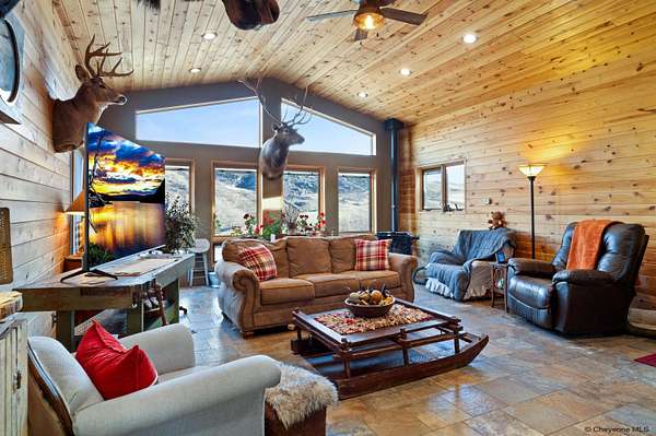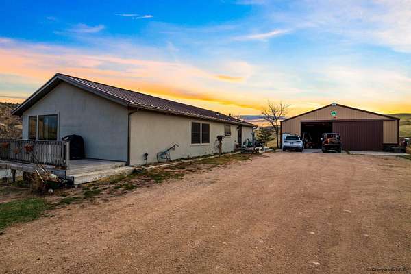 This property is the unicorn of all unicorns in Laramie County. It boasts 40.40 acres of pristine national park quality land and the kind of beauty and privacy you're looking for. This one of a kind property has acres of natural habitat. The acreage has an array of wild animals , a variety of birds and waterfowl. All supported by 2 live streams, 6 underground springs feeding a 3 acre pond. Elk, deer, moose, geese, ducks, trout, eagles, osprey, blue heron, and many others call this land home. Kimber Pond- your personal private pond, has been stocked year after year with Rainbow, Brown and Brooke Trout. The sellers have always practiced catch and release to grow trophy trout. Every morning the pond boils with trout feeding and jumping out of the water. The pond is deep so it has not winter killed since the sellers have owned this serene gem. Can you imagine stepping off of your deck and catching a 29" rainbow trout? In the spring ducks and geese use this refuge as their breeding area. If you're looking at the right time you may observe the elusive martin, bobcat, mountain lion, bear or badger that pass through. Wildlife abounds everywhere. If hunting or deer watching is your thing you won't have to go off your deck to see trophy mule deer mingling just outside the huge windows that overlook this paradise of massive rock outcroppings and the valley where the creek meanders through. The creek forms into a waterfall when the water is flowing. Enjoy star-filled nights with only the sound of howling coyotes to accompany the near silence. This is exactly what those dreaming of moving to Wyoming have dreamed of. The Home. You have a newly finished stucco finished exterior, new Pella windows throughout, beetle kill tongue & groove ceilings, a renovated master bath with a clawfoot tub, and a cozy wood burning pellet stove The main floor is 1868 sqft. The unfinished basement is 1868 sqft. The deck offers panoramic views. This home is located 2 minutes from Curt Gowdy State park on a private, residents only road. If riding bikes is your jam...in 2022 Curt Gowdy's multiple bike trails were ranked number 8 in the nation according to a USA Today's Reader's Choice publication. Curt Gowdy supports 3 large reservoirs, miles of hiking trails, bike trails, a waterfall and boating. This is where the locals go to recreate. This subdivision is extremely private and exclusive to those who own within its boundaries. Please respect the privacy of the sellers and neighbors. Please call your favorite realtor to set up a viewing on this amazing property. Disclaimer: Property is under constant video surveillance and privacy is important to the sellers. Any attempts to fish,hunt or hike without a scheduled viewing could result in a trespass ticket.