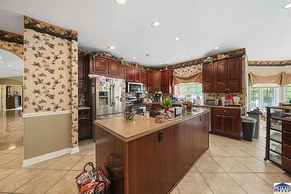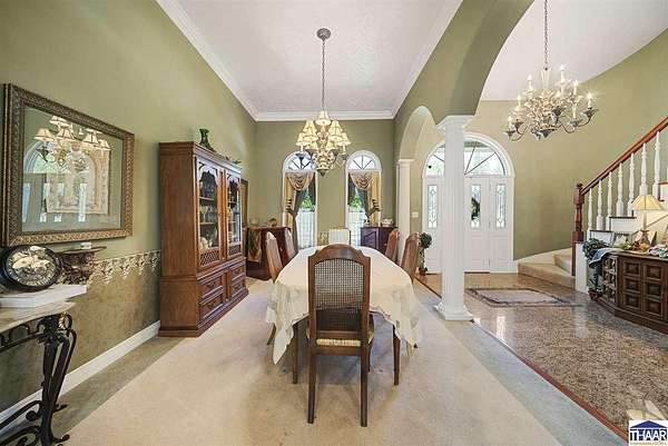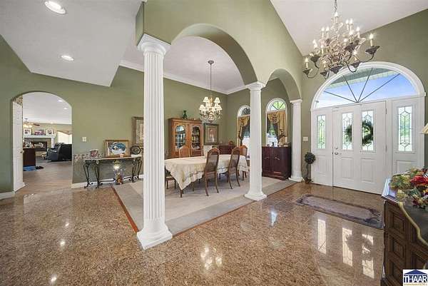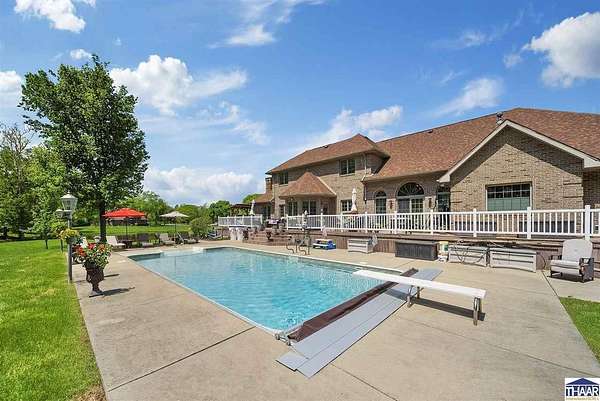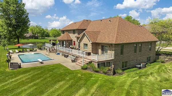 The Manor on Three Acres. Built by Richard Jenkins. Spacious and distinctive 6-bedroom, 8-bath home located in the desired Richland Manor subdivision of Terre Haute, set on a beautiful 3-acre lot. Offering over 6,000 square feet of living space, this home features dated charm with generous room sizes and a layout ideal for entertaining. The property includes a pool, a treated and stocked pond, and a tree-lined backyard that provides exceptional privacy. A 3-car garage offers plenty storage and convenience. Neighborhood security adds peace of mind, while the expansive indoor and outdoor spaces make this home perfect for hosting gatherings, celebrations, or relaxed get-togethers. A rare opportunity to own a substantial estate-style property with acreage, privacy, and endless potential in an established community.
