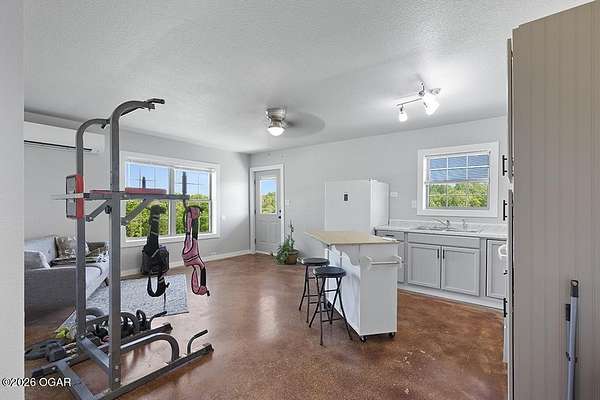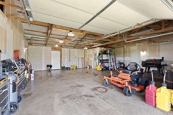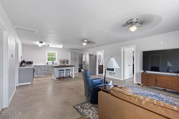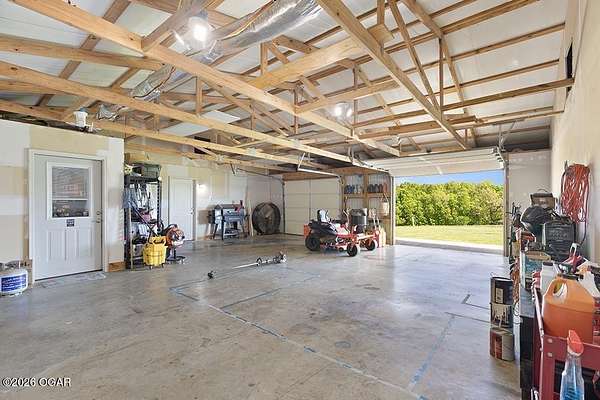 Welcome to your private country retreat! Situated on 7.16 picturesque acres, this beautifully maintained 4-bedroom, 2-bath barndominium offers the perfect blend of comfort, functionality, and serene natural beauty. Surrounded by rolling green pastures, abundant wildlife, and breathtaking hilltop views, the setting truly feels like your own park. The home features a thoughtfully arranged layout ideal for multi-generational living, including a fully functional in-law suite or attached apartment--perfect for extended family, guests, or potential rental income. The home was built with quality and efficiency in mind, featuring 2x6 frame construction and newly added attic insulation. Inside, you'll find numerous recent updates, including fresh paint, updated vanities, and kitchen islands in both living spaces. All appliances convey, including refrigerators, freezers, washer, and dryer--making this property truly move-in ready. Step outside and enjoy the expansive acreage, complete with an outdoor dog kennel and plenty of room to roam, relax, or expand. A massive insulated garage with double doors provides ample space for vehicles, equipment, or workshop needs. Two owned propane tanks add convenience and efficiency. Whether you're looking for peaceful country living, space for loved ones, or an opportunity for additional income, this property offers it all. Come experience the beauty and versatility of this exceptional hilltop setting--your next chapter starts here.