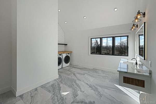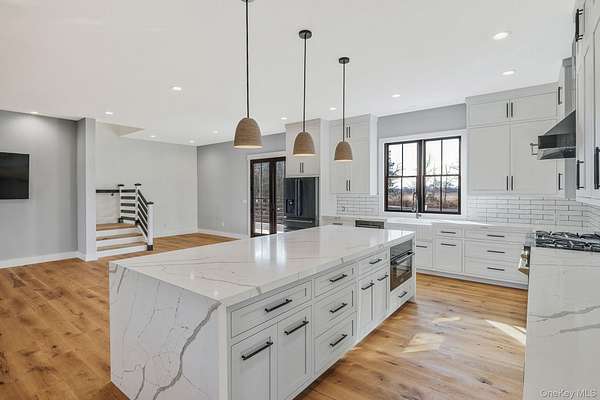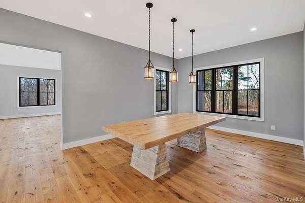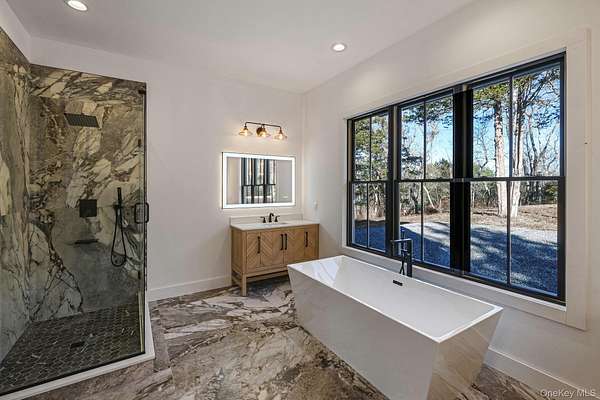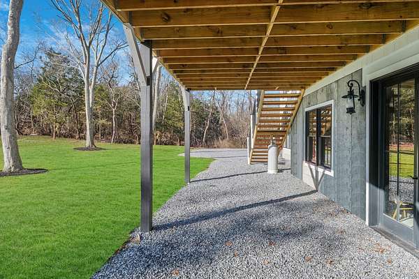 Welcome to 475 West Lane, a stunning new construction nestled in the heart of Aquebogue, on Long Island's desirable North Fork. This home offers the perfect combination of luxury, comfort, and modern living, with 4 spacious bedrooms, 4 bathrooms, and over 4,800+ square feet of beautifully designed living space. The front cedar porch, framed by elegant white oak beams, provides a welcoming space for family and guests to enjoy. As you step inside, you're immediately greeted by an open-concept layout designed to maximize space and natural light. The first-floor living area boasts 10-foot ceilings, creating a bright and airy atmosphere, while the second floor features soaring 15-foot ceilings that give the entire home an expansive feel. The heart of the home is the chef's kitchen, which has been thoughtfully upgraded with over $100K in top-of-the-line finishes. A large 10.5' x 4.5' waterfall island takes center stage, complemented by quartz countertops and a classic handmade subway tile backsplash. Whether you're preparing meals for the family or entertaining guests, this kitchen has it all-stainless steel appliances, plenty of storage, and a large open flow into the dining area, where a custom-built dining table adds elegance and durability. This home offers two primary suites, one on the first floor and one upstairs. Both primary bathrooms feature heated porcelain floors, creating a luxurious, spa-like experience. Every detail of this home has been carefully considered, from the white oak hardwood floors throughout the home that are 7 inches thick, giving the space a warm and luxurious feel. Over $100K was invested in the flooring alone. The finished basement offers incredible potential for customization, with 12-inch thick walls reinforced with 3/4 rebar, a 6-inch slab for extra stability, and a brace wall for added support. It also includes an exterior entrance, providing easy access for storage, a recreation room, or additional living space. The high-end Anderson 400 black windows ($100K upgrade) let in abundant natural light, and the $100K white cedar shingle siding on the exterior, secured with stainless steel nails, ensures durability. The home's roof, upgraded with a $60K metal roof, is both stylish and built to last. Additional features include a spacious two-car garage, providing ample room for vehicles and extra storage. The backyard features a 38' x 12' cedar deck, ideal for relaxing or hosting family and friends. The property offers endless potential, with 2.25 acres of land, plenty of room for a pool, tennis or pickleball court, or even horse stables. The large lot provides privacy and space to create your own outdoor retreat. This home is more than just a place to live-it's a place to create lasting memories. With its luxurious finishes, thoughtful design, and incredible location, 475 West Lane is truly a one-of-a-kind property. Minutes away from the Lighthouse Marina and award winning vineyards. Don't miss the opportunity to make this dream home yours.